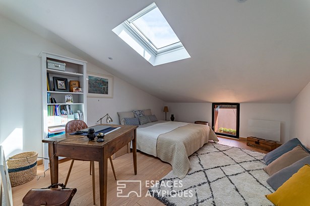 Upstairs, a master suite with its bathroom and fitted dressing room, spacious and bathed in light, seduces with its serene atmosphere and elegance. Two other bedrooms offer beautiful volumes. Finally, a fourth attic bedroom with a unique charm reveals a soft and soothing ambiance. A family bathroom, both elegant and practical, completes this level, bringing comfort and harmony to the entire floor.