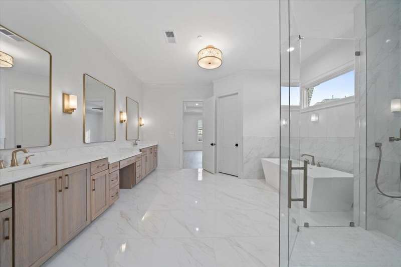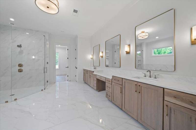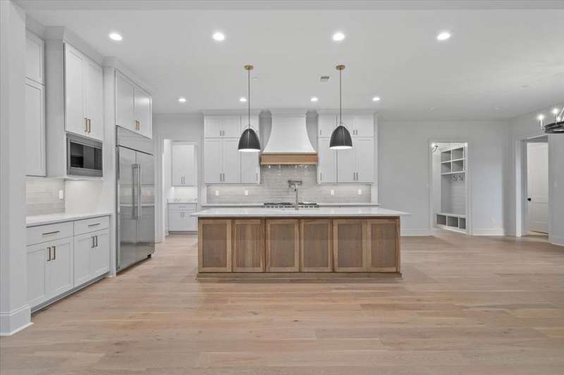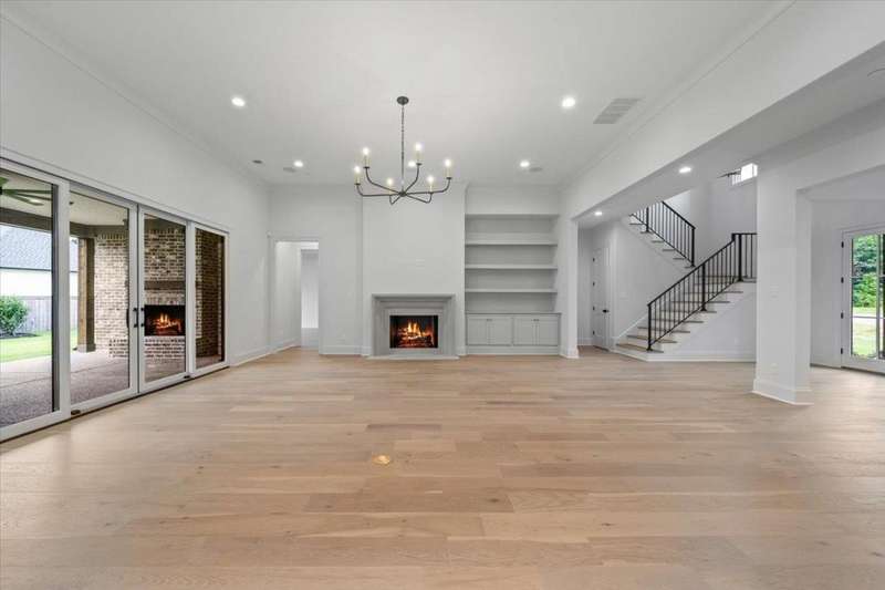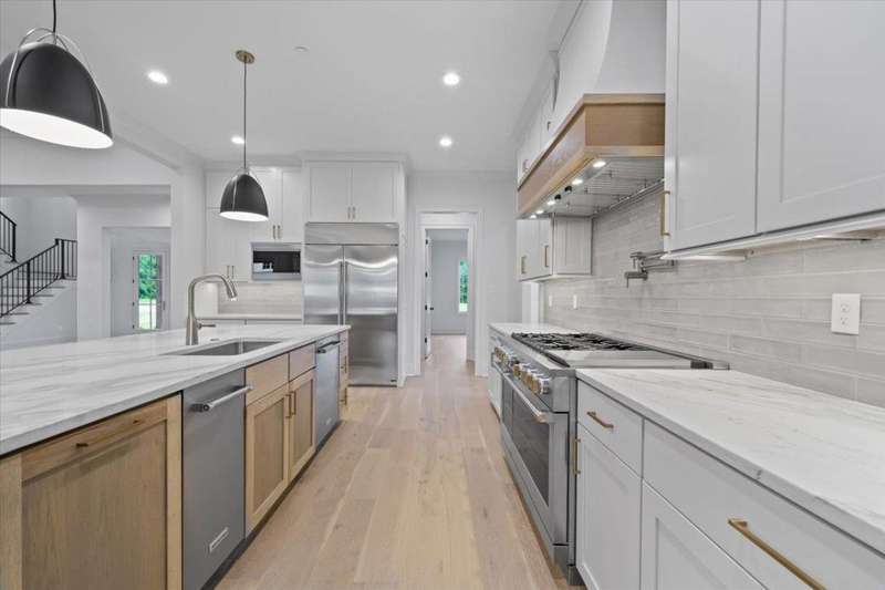 Germantown's newest premier Gated Community?Olde Field Green. This luxury home built by Mark Smith, Smith & Linder Homes, blends elegance with function, featuring white oak hardwoods, a professionally designed kitchen with GE Profile appliances, built-in fridge/freezer, 48" gas range, large scullery with prep sink & pantry, plus a beautiful butler's pantry with lighted custom cabinet & beverage center. The open-concept living area extends to a covered patio with fireplace. 5 spacious ensuite bedrooms (2 down), luxury primary bath with freestanding tub & seated vanity. Upstairs offers an office, bonus & media room. Premium finishes include designer lighting from Graham's, Pella casement windows, and a fire-suppression system for added safety.