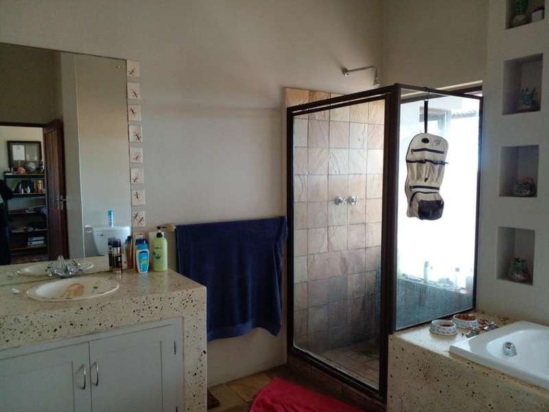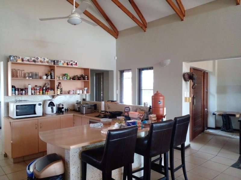 The 21ha stand concept of land ownership in MPGR guarantees unmatched privacy and exclusivity with regards to the land you own. The property on this 21ha land consists of the following. This modern home has 4 spacious bedrooms all with en-suite full bathrooms. built-in cupboards, ceiling fans, and Aircons. The main bedroom has an indoor and outdoor shower with a view of the game reserve. Guest toilet Open plan kitchen with breakfast nook, modern wooden cupboards, separate scullery, and laundry area leading to the closed courtyard with store/pantry room and home office space. 5000l JoJo tank connected to the property. Open plan Dining area leading to tv/family room. The dining and family room has a big aluminum sliding door leading to the entertainment area. Big stoep area with a magnificent view of the reserve and a water hole where you have the opportunity to see a big selection of wild animals. The property has electrical geysers and also a solar geyser option. Separate from the house you will find a spacious modern one-bedroom flat with an open plan kitchen and living area. Bedrooms with build-in cupboards, ceiling fan, and an aircon, Big sliding door can be opened to view outside. Full bathroom with indoor shower with doors that are open as well an outdoor shower, built-in bath has windows sliding wide open. Double garage with motorized door, carport for 6 vehicles. Alarm system, yard beams, and electric fencing.