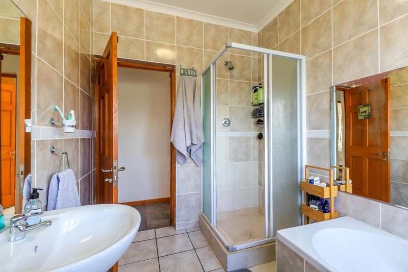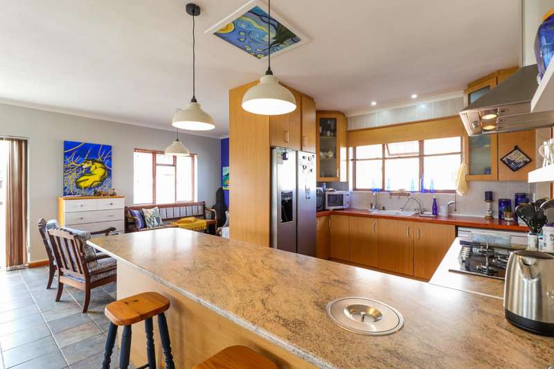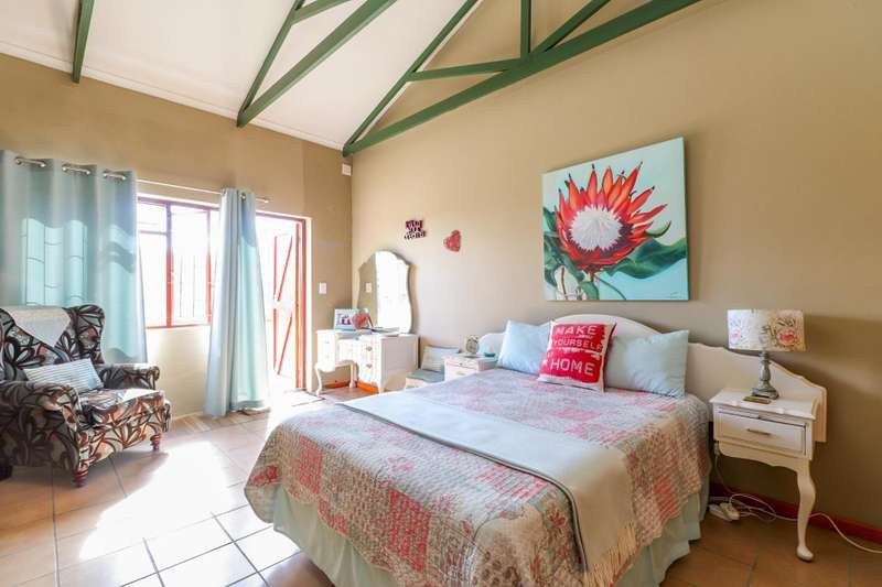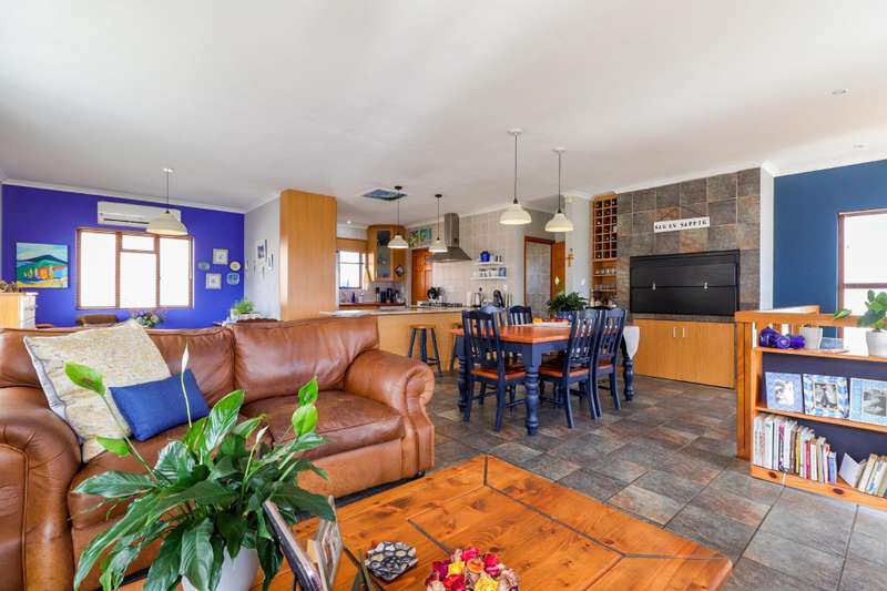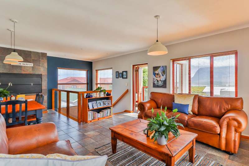 Sole Mandate - Lovely 3 Bedroom home on a double plot with a 2 bedroom flatlet. Main house consists of 3 bedrooms with 2 bathrooms, study and upstairs sunny north facing open plan lounge/braai, dining area, kitchen with pantry and guest toilet. Stunning mountain and sea views. Single garage and store room/ laundry. Cottage consists of 2 bedrooms, 2 bathrooms, open plan kitchen, lounge and braai area. 2 Aircons and gas stove. Single garage with direct access to the cottage. Own private garden. Extra's alarm system with cameras. Well point with pump and water tank. Can be change to use in the house. Solar panels, inverter and battery system. Almost off the grid.