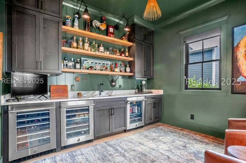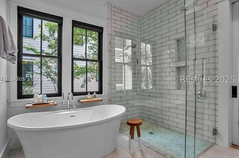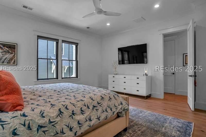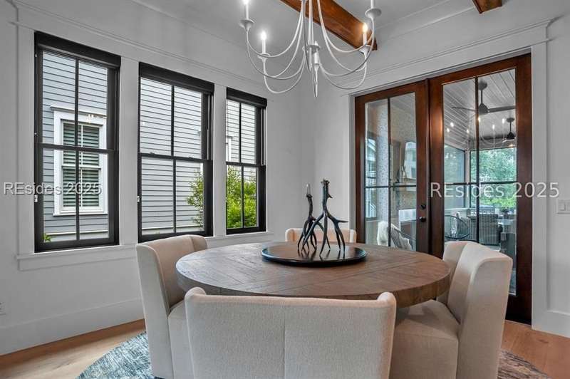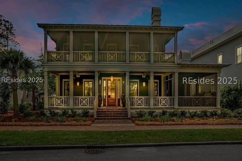With expansive views of the park from multiple porches, 192 Hunting Lodge is a modern, coastal home built for easy first floor living with chefs kitchen, living space, dining room, separate library, private bourbon room, screened and open porches and sprawling primary suite. Upstairs, the second floor allows guests their own private escape with 2 ensuites, spacious flex/media room and screened porch overlooking the park. An above-garage guest suite and 2 car garage round out this ideal Lowcountry home that is steps away from the member-only pool, fitness center, playground, dog park and inland waterway and trails.