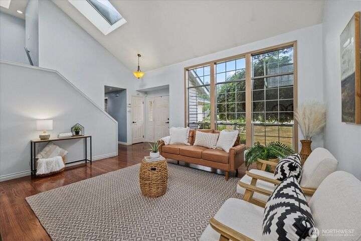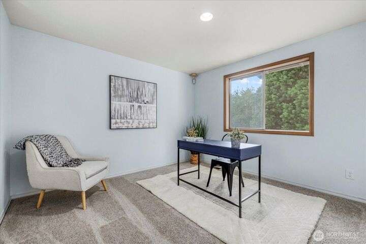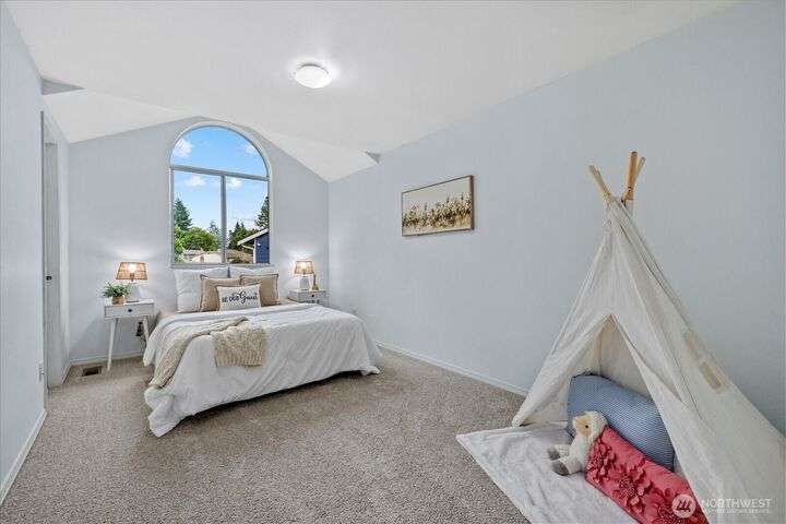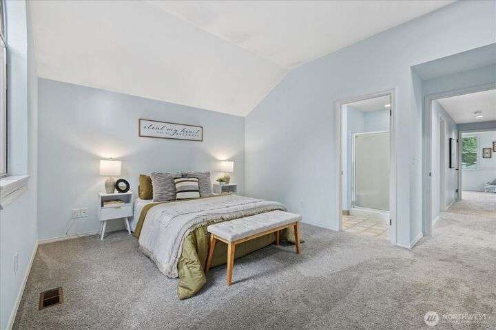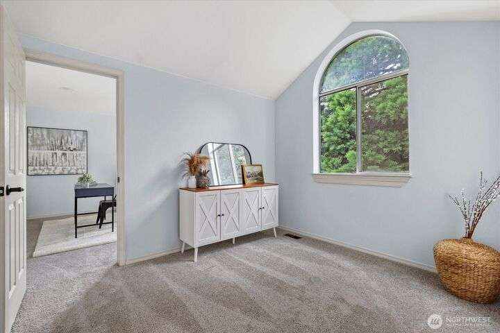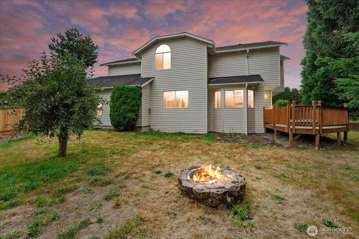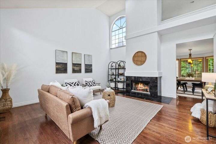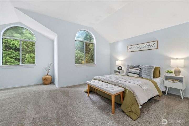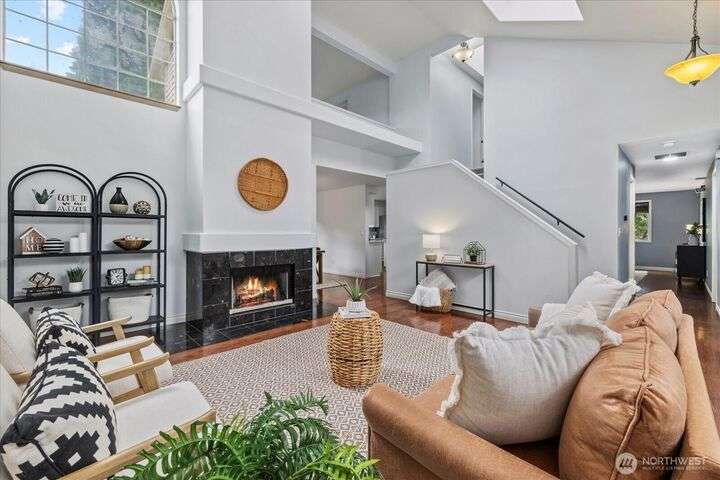 Step inside to light, warmth & spaces crafted for comfortable living. Vaulted ceilings, hardwood floors and a charming wood-burning fireplace set the mood. Walls of windows fill the home with daylight, while open living & dining areas create flow. The kitchen showcases new quartz counters, stainless-steel appliances, refreshed cabinetry & a sunny nook that opens to the deck & fenced yard. Upstairs, the expansive primary retreat offers a seating area, updated bath & versatile loft/office. Bedrooms are spacious, and the oversized laundry adds function & storage. Fresh interior paint, new carpet, wired for hot tub out back & pre-inspected. Peacefully set on a little cul-de-sac near top schools, shopping & commuter routes.