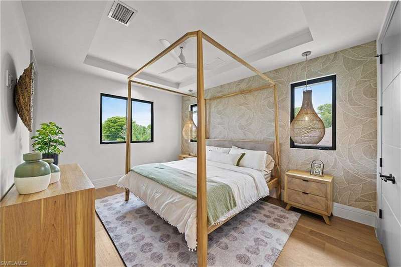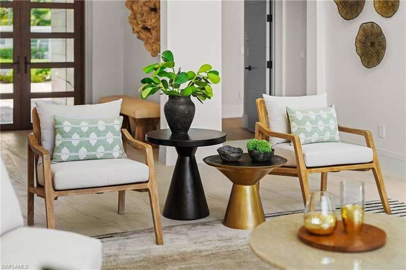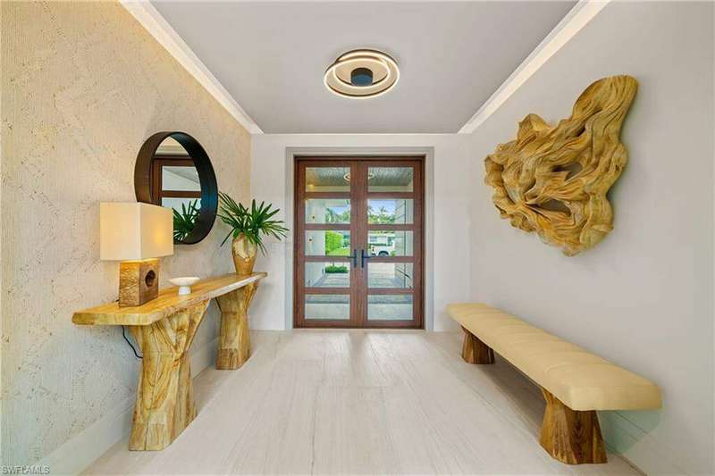 Renowned award winning custom home builder Sea Castle Development partnered with architect Ashmore Design to bring together a distinct offering in Lake Park unlike any other. Effortlessly blending elegance with livability, this extraordinary residence offers refined comfort across 3,766 square feet of sun-filled living space. This nature inspired home features an open-concept floor plan, soaring ceilings, and curated designer finishes throughout every inch. The chef's kitchen is outfitted with a top-tier Thermador appliance package, while the summer kitchen boasts premium XO appliances-ideal for seamless indoor-outdoor entertaining. With natural elements present throughout the home, the backyard oasis lures you with its charm. Featuring multiple entertaining areas, one being shaded by a motorized pergola & the other fitted with electric screens & shutters - there is more than enough space for any type of gathering. The first-floor primary suite delivers comfort and convenience, while upstairs, a bedroom and two additional en-suites surround the spacious loft and a private balcony. Additional highlights include an elevator, hurricane impact windows and doors, engineered white oak Real Wood flooring, stunning designer tile work, sonos sound system throughout, propane heated saltwater pool / spa, & 24kw generator with automatic transfer switch. Offered fully furnished, this exceptional home is move-in ready and ideally located just minutes from Naples' white-sand beaches, shopping and world class dining. Ready for immediate occupancy.
