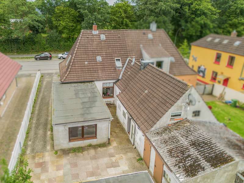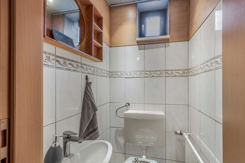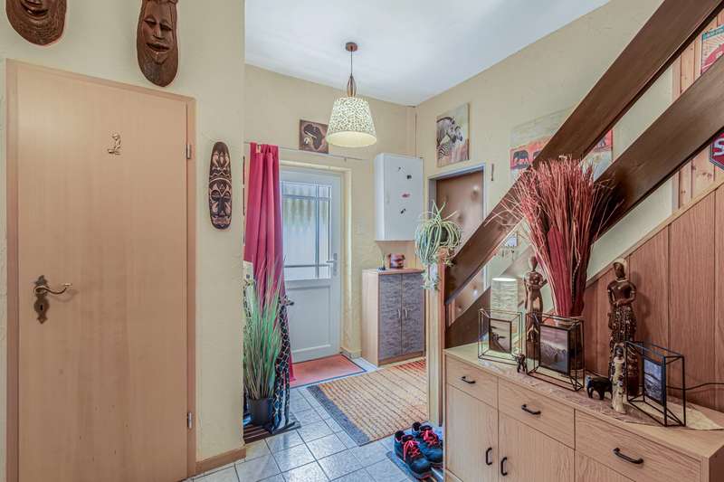 This solid semi-detached house from 1922 with an extension from 1953 offers generous space for living and working on a total of approx. 147.55 m² of living space and 31.51 m² of usable space. The plot covers 1,027 m² and boasts a large, fully enclosed garden facing south/west, a small pond, a greenhouse, a well for the groundwater pump, a terrace, an outdoor barbecue and a flagpole. The location is close to the city center, ensuring short distances to shops and public facilities. On the first floor with a living space of approx. 106.46 m² and a room height of approx. 2.82 m, there is an entrance area, a guest WC (renovated in 2003), a full bathroom (renovated in 2003) with bathtub, shower and connection for the washing machine as well as a new instantaneous water heater (2023), a bedroom, a living room, a dining room, the kitchen with fitted kitchen (2009), a storage room and a hobby room. The top floor comprises approx. 41.09 m² of living space with a height of approx. 2.45 m and offers a dressing area, a hallway and two bedrooms that can be used flexibly as bedrooms, children's rooms or studies. The basement offers approx. 21.17 m² of usable space and two rooms with a height of approx. 1.73 m. Two further, externally accessible side rooms on the first floor with a total of 10.34 m² create additional storage space. The furnishings are simple, the property is in need of renovation and therefore offers plenty of potential for individual design. Highlights include the wooden staircase, the wooden ceilings between the ground floor and attic, predominantly wood-paneled ceilings, two plastic windows in the attic (2010, double-glazed), all other wooden windows (double-glazed, 1978 and 1990), three single-glazed skylights, a plastic front door (2004), a new electrical fuse box (2003), pipes and electrics from approx. 1979, a gas heating system (2004), floor coverings made of tiles, laminate, carpeting and linoleum as well as fiber optics, cable TV and SAT system. External roller shutters are not available. The outdoor facilities are versatile and offer a double carport (2009) with adjoining workshop and power connection, five parking spaces on the paved driveway, a greenhouse, a tin shed, the terrace, the pond, a well for the groundwater pump as well as an outdoor grill and a flagpole. The carport provides direct access to the rear of the property. The house is available from 04.11.2025 and is suitable both for owner-occupation and for re-letting. Partial moisture in the cellar should be noted. Overall, this semi-detached house impresses with its combination of generous living space, versatile outdoor facilities and central location. Despite being in need of renovation, the property opens up numerous possibilities for families or investors who would like to modernize and design the house according to their own ideas. See this property for yourself - arrange your personal viewing appointment today and experience the charm of this house at first hand. Take advantage of the opportunity to take a virtual tour in advance using the QR code on the fourth page of the brochure.
