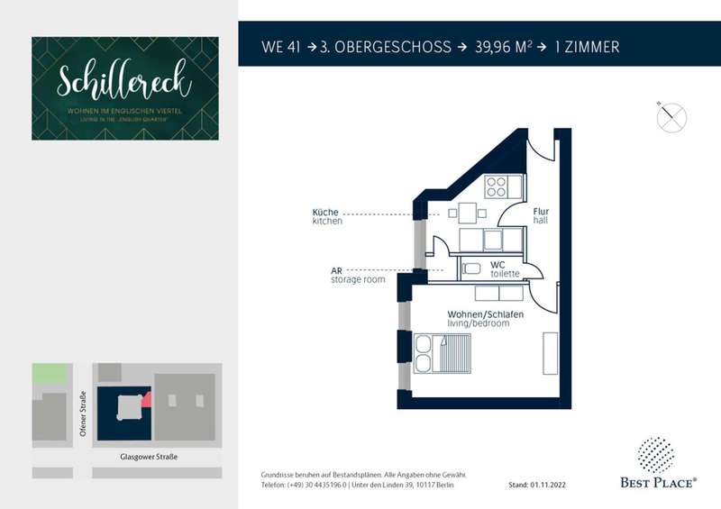 The 49 residential units of this beautiful, five-storey old building corner house are between approx. 36 m² and 76 m² in size, have one to four rooms and are located either in the front building or in the side wing. The flats are equipped with a cellar compartment and most of them have a balcony. Furthermore, there are a total of four rented commercial units on the ground floor, which are also for sale.