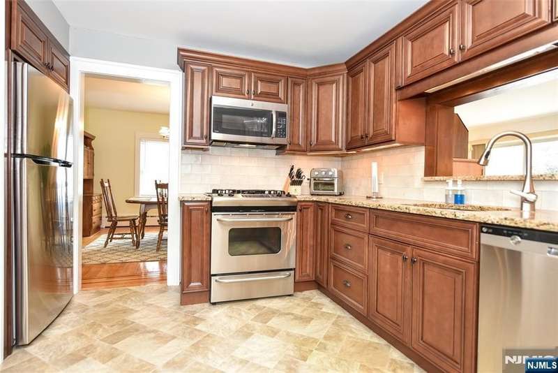 Welcome to this stately Dutch Colonial home that offers the perfect blend of classic architecture and modern comfort. With 3 bedrooms, 2 full baths, and a thoughtfully finished lower level, this spacious home is ideal for both everyday living and refined entertaining. Step into the gracious formal living room featuring a wood-burning fireplace and gleaming hardwood floors with rich double inlay detailing. Adjacent to the living room is a versatile den—perfect for a home office, library, or reading room. The formal dining room flows seamlessly into an updated kitchen, beautifully appointed with granite countertops, stainless steel appliances, and a charming breakfast nook. The expansive family room is the true centerpiece of the main level, filled with natural light and offering direct access to the rear deck through sliding glass doors. A full bath completes the first floor. Upstairs, the serene primary bedroom is accompanied by two additional well-sized bedrooms and a full hall bath. The finished lower level adds valuable living space with a media room, dedicated laundry area, and a convenient quarter bath. Outside, enjoy meticulously maintained grounds featuring a paver patio, in-ground sprinkler system, one-car garage, and ample driveway parking. A rare opportunity to own a beautifully maintained home with elegant details and generous living spaces, in a location that offers both comfort and convenience. Walk to NYC bus or short drive to train station.