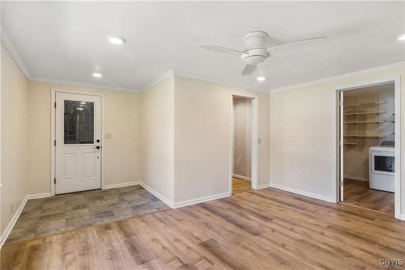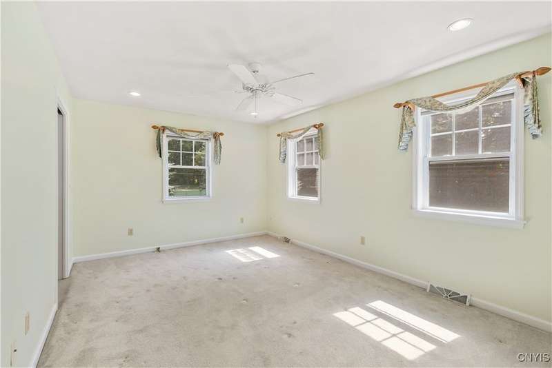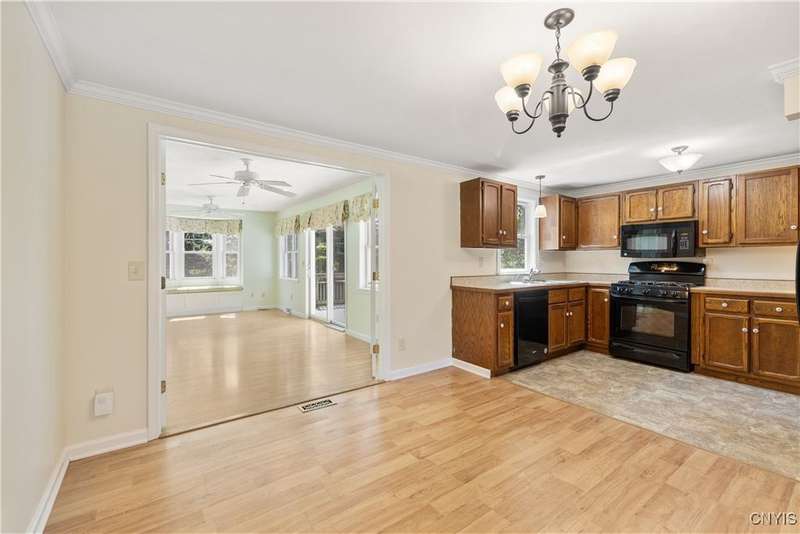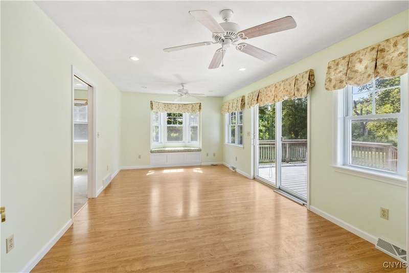 Ranch with 1,900 + square ft. There are four bedrooms with the primary one offering plenty of space, full bath includes walk-in shower and walk-in closet. Large year around sunroom, dining area, formal living room with gas fireplace. Separate utility room, laundry, 2 1/2 baths. Enjoy the large deck overlooking the private treed back yard. All this in good condition ready to just move in. Nearby village parks, walking trails and so much more!
