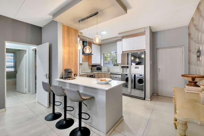 This exquisite north-facing ground-floor apartment stands out with its expansive landscaped garden and flawless contemporary renovations. Every detail has been thoughtfully considered, creating a home that combines modern elegance with practical comfort. The heart of the home is a sleek, fully renovated kitchen that flows into the spacious lounge and enclosed patio. The patio, now transformed into a stylish dining area, features stacker doors opening onto a paved seating area and the beautifully landscaped garden ?Çô perfect for both relaxation and entertaining. A generous garden shed provides excellent additional storage. The main bedroom is a sunny retreat with a charming bay window, ample cupboards, and a contemporary en-suite bathroom. The second bedroom, also with a bay window, is equally spacious and modern. A second fully renovated bathroom with a bath also serves as a guest loo. Additional features include: ?Çó Neatly installed inverter for reliable power supply ?Çó One covered carport and one open parking bay ?Çó Complex swimming pool plus full access to the world-class amenities and security of Eagle Canyon Golf Estate This home is truly cr?¿me de la cr?¿me ?Çô offering sophisticated design, attention to detail, and an unrivalled garden setting. A rare opportunity for the discerning buyer. Contact us today to arrange your private viewing.