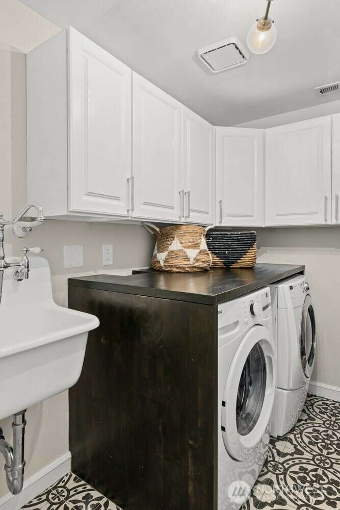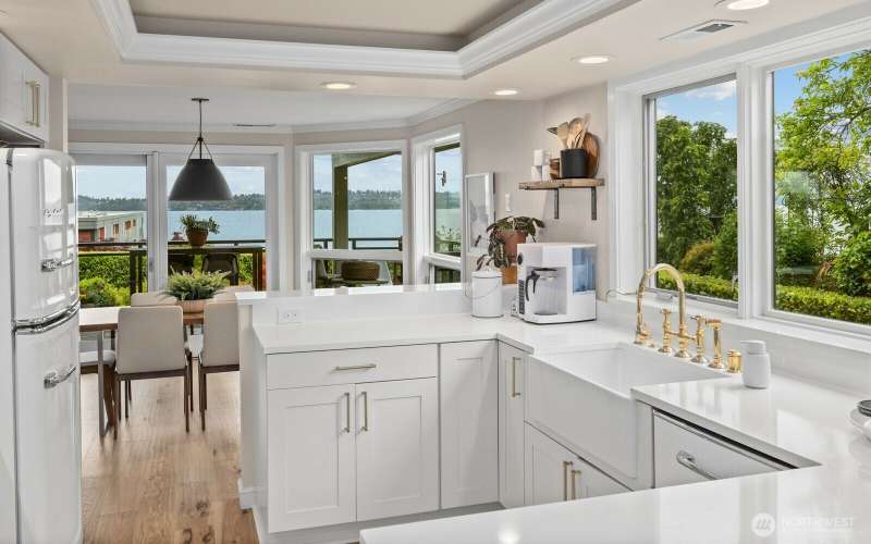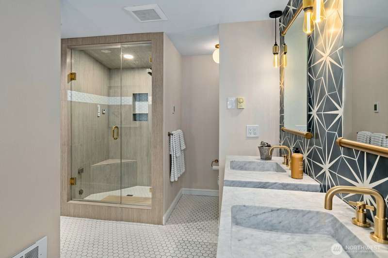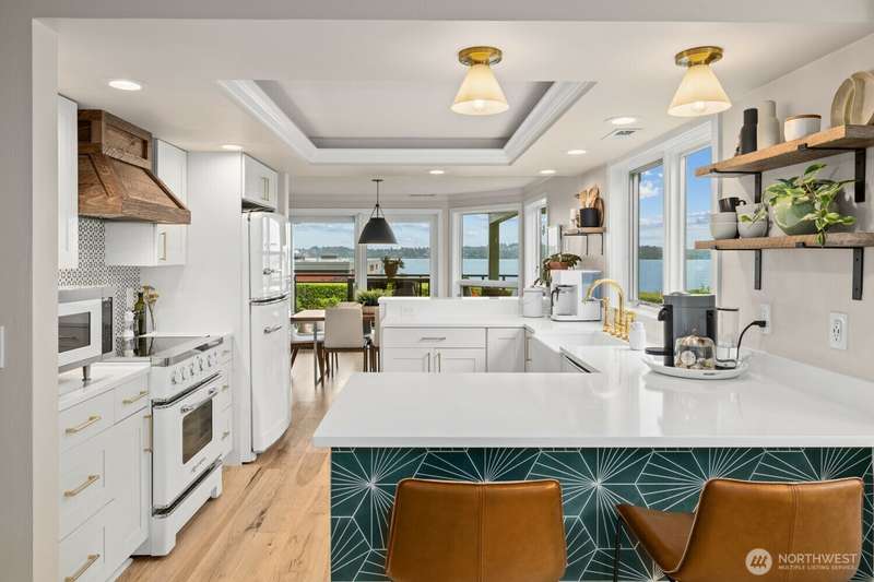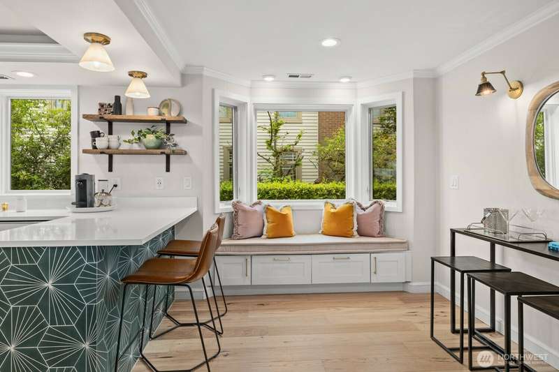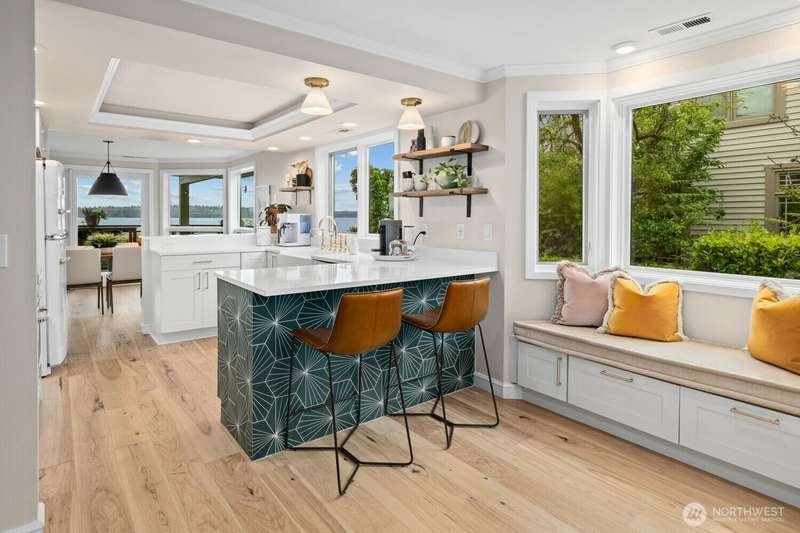 Soul-lifting views entice from craved, Downtown Kirkland location where waterfront parks, vibrant eateries, galleries and so much more are all an easy stroll away. Step inside and find the newly-realized, Coastal-chic interior dressed in timeless good taste with expanses of solid white oak playing nice with Moroccan tile, honed marble, sleek quartz, hewn alder and designer-culled lighting & fixtures. The Owner's suite is study in indulgence with custom vanities, matte brass, vibrant tile & luxe steam shower. The Chef's center delivers serious function with just a hint of whimsy thanks to uber-cool Big Chill appliances. Roomy guest suite, elegant full bath, photo-worthy laundry center & storage to spare. Central air & dedicated parking, too!