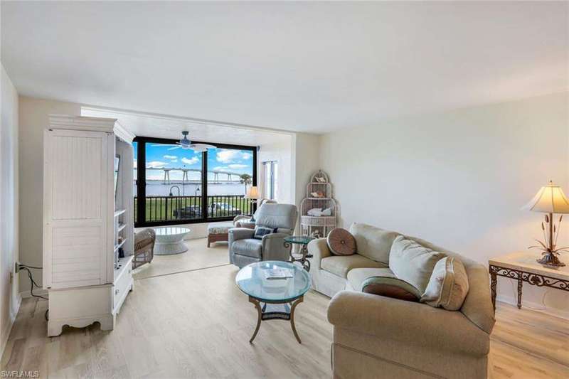 Don't miss this incredible 1st floor opportunity! Enjoy panoramic bayfront views from this beautiful condo in Punta Rassa, your Gateway to the Islands. Overlooking the Causeway and serene Bay waters, this unit offers spectacular vistas and assigned covered parking-a rare find! The Sanibel causeway is complete, and beaches are now open to the public Located just steps from the pool and cabana, this unit is perfect for entertaining and soaking up the Florida lifestyle. Recent updates offer peace of mind, including a new roof, new A/C, new water heater, new LVP flooring and some impact-resistant glass. The kitchen and bath areas feature neutral Formica cabinetry and countertops, along with tile flooring and backsplash. The spacious primary bedroom with LVP flooring includes an additional window for abundant natural light. Offered fully furnished, this home is move-in ready for full-time living, seasonal use, or investment. Punta Rassa offers monthly minimums rentals and is pet-friendly for Owners-allowing two pets with no weight restrictions. Residents enjoy access to waterfront dining options at the adjacent Sanibel Harbour Yacht Club and are just around the corner from the Sanibel Harbour Marriott Resort & Spa and Bimini Bait Shack. Please note: Amenities are in the process of being rebuilt, and construction continues in other buildings.