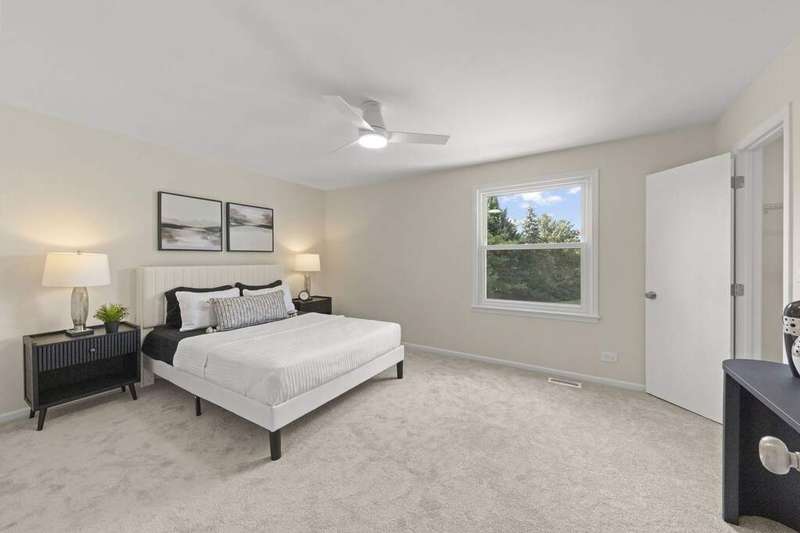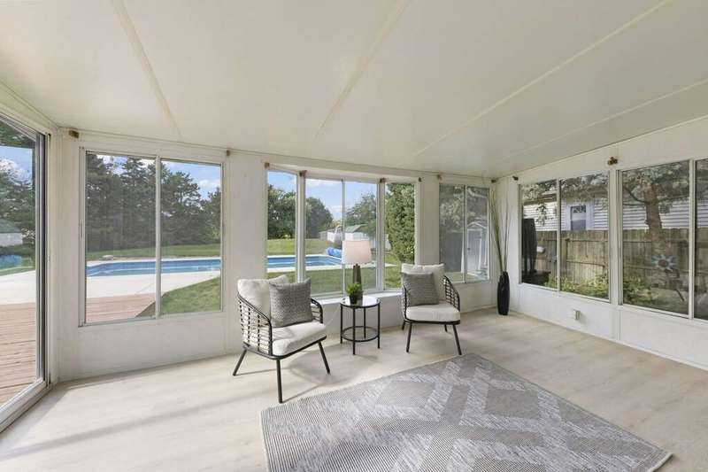 Tucked away on a quiet cul de sac, this beautifully renovated home rests on over a half acre lot, combining modern comfort with timeless charm. A full interior renovation completed in 2025 brings a brand new kitchen, 2nd story full updated bath, fresh neutral paint, luxury vinyl plank flooring on the main level, plush new carpet upstairs, and designer lighting throughout, creating a bright, sophisticated, and move in ready space filled with natural light. The main level offers an open, thoughtful layout that flows effortlessly from the living and dining areas into a spacious family room centered around a warm wood burning fireplace. Just off the family room, a bright three seasons room overlooks the expansive backyard, perfect for morning coffee or relaxing summer evenings. The stunning new kitchen features quartz countertops, white Whirlpool appliances, modern cabinetry with added storage and seating, and a seamless connection to the living spaces. A convenient first floor laundry and updated half bath add everyday functionality. Upstairs, you'll find three generous bedrooms and a beautifully renovated full bath. The primary bedroom overlooks the serene backyard and includes a cedar lined walk in closet. Outside, the expansive park like backyard, sitting on over a half acre of land, is a true private retreat surrounded by mature trees planted by the current owners for privacy in 1996. Designed for entertaining, it includes a large deck, built in outdoor kitchen, two storage sheds, and a garden ready for your favorite fruits and vegetables. The in ground pool was fully refurbished in 2022 with a new liner, coping, skimmer, filter, pump, and concrete deck, and is piped for a natural gas heater. Additional highlights include a Tesla charger, newer windows, newer sliding door to the sunroom (2023), a remodeled half bath (2023), newer roof and siding (2016), new furnace (2019) and a fully replaced driveway. Perfectly situated within highly rated Naperville District 204 schools, this home is just minutes from restaurants, walking trails, Eola Library, Waubonsie High School, and Fox Valley Mall. With Rush Copley Hospital only a short walk away, it beautifully blends modern comfort, outdoor living, and everyday convenience. 2235 Highfield Court is ready to welcome you home!