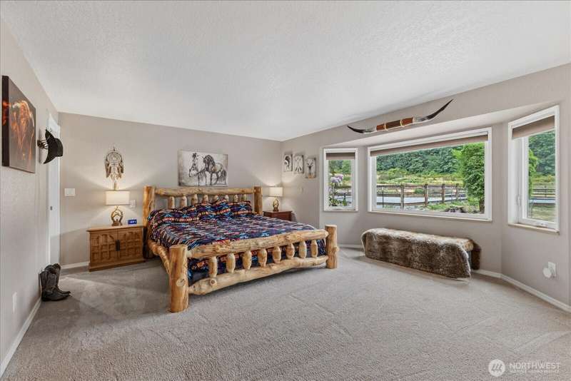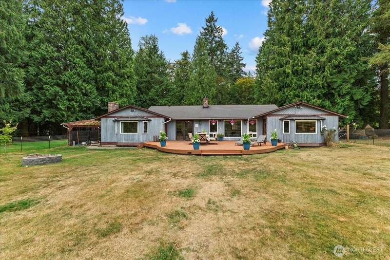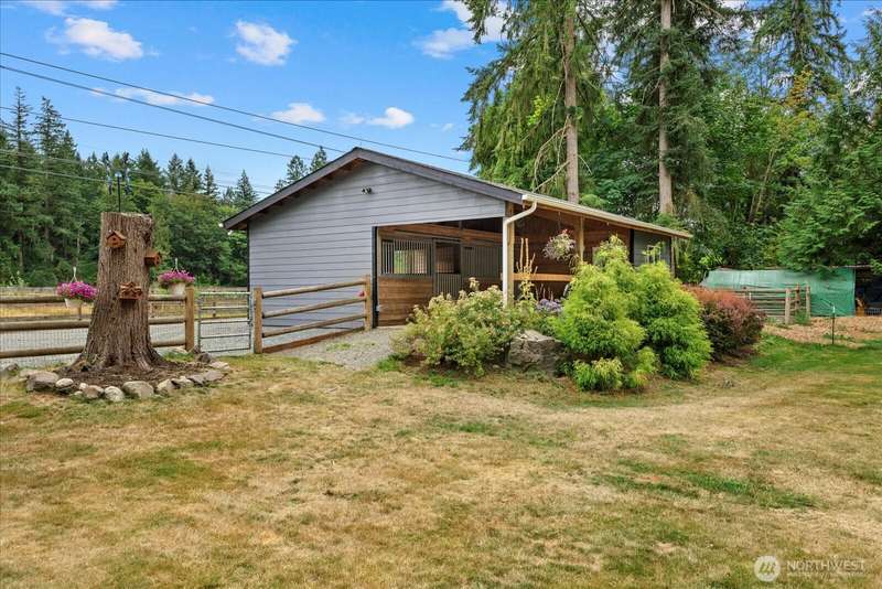 Kent equestrian estate on 2.8 acres! Spacious 3,050 sq ft 5BD/3BA rambler features hand-scraped hardwoods, SmartStrand carpeting, French doors, 2 wood-burning fireplaces, heat pump w/ A/C, and a large entertainer’s deck. Custom 2-stall show barn (2019) offers heated tack room with hot water, 4 pull-out drawers, shelving with saddle & blanket racks, 12’ aisle, 12x12 rubber-matted stalls, 3-ton hay storage, paddock with hoof-grid mud-free footing, 2 separate pastures, 12x24 loafing shed, and 60x80 arena. Oversized 3-car garage includes shop with air compressor lines plus guest apartment suite. Year-round pond, gated entry, well w/ generator, freshly painted barn, septic serviced, and crawlspace with new vapor barrier and sump pump.