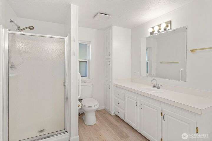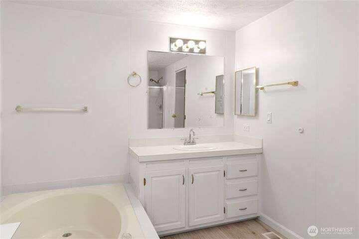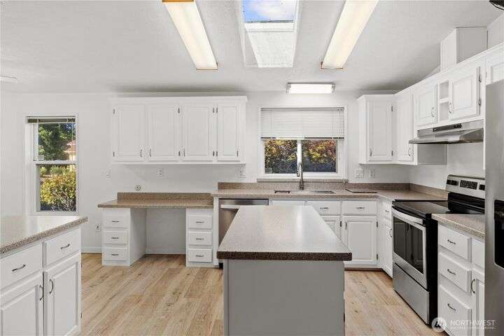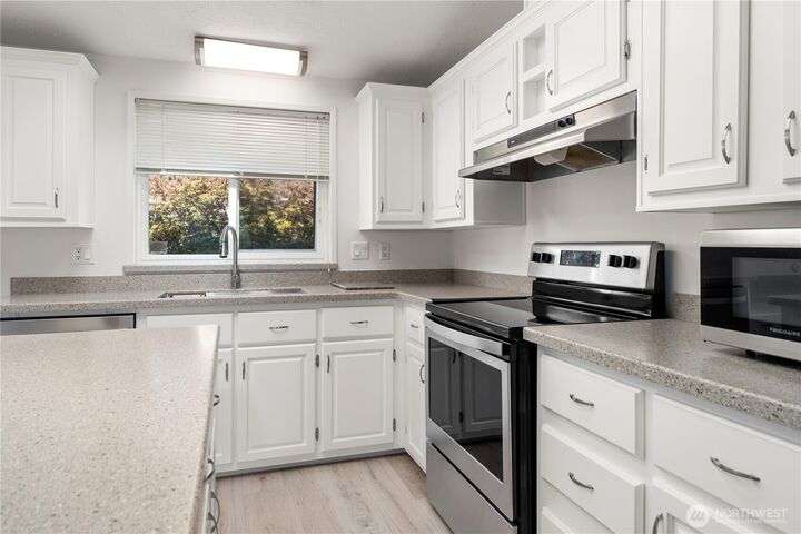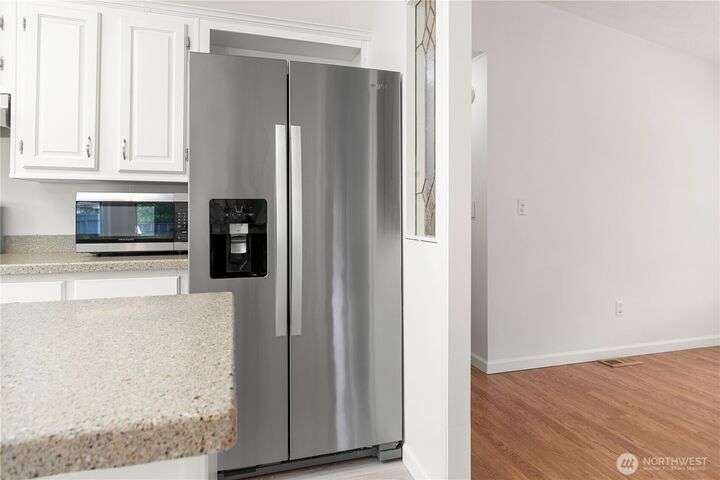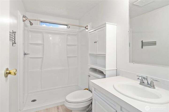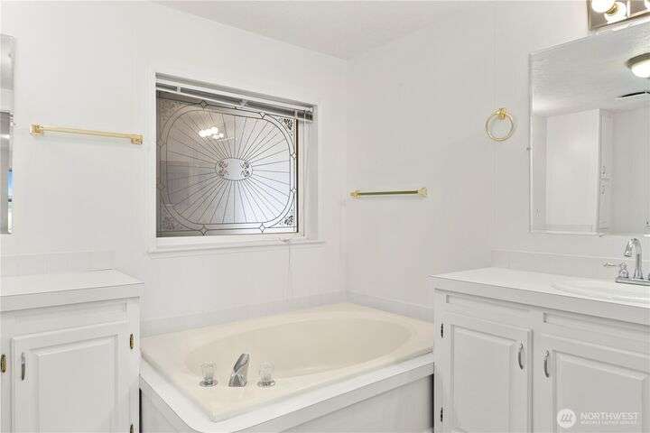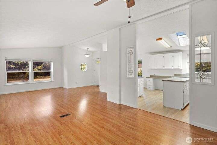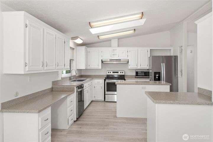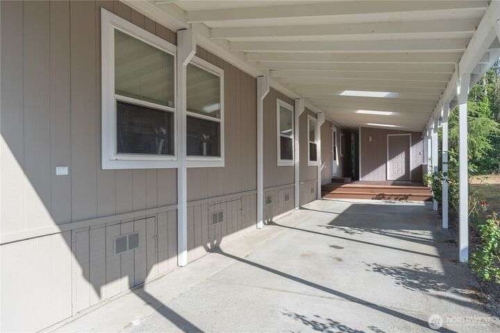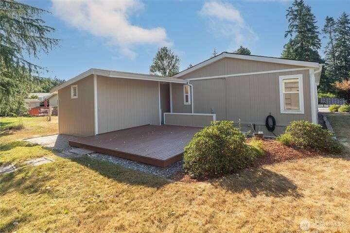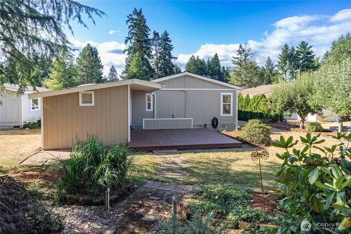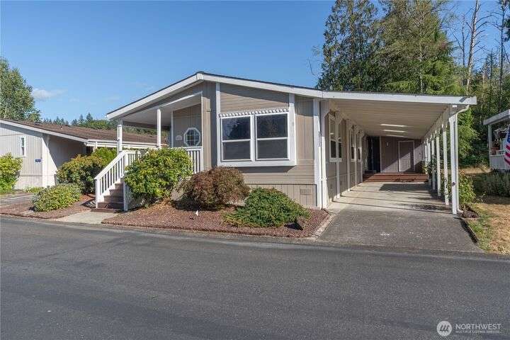 Premier Senior Living! 1782 SF home featuring fresh paint both inside & out and Heat Pump. The expansive kitchen has white cabinetry with solid surface counters, stainless steel appliances & sunny breakfast nook. Primary bedroom includes large walk-in closet & ensuite bathroom w/walk-in shower & soaking tub. Updated guest bath has new walk-in shower. Outdoor amenities include a private backyard with fruit trees, a deck, and serene sitting area nestled among the trees. Additional highlights are a covered deck in carport & finished 30x10 shop complete w/3 skylights, ample cabinetry & sink. Silverdale Estates is a 55+ community with a clubhouse, indoor swimming pool, hot tub, sauna & more. Close to shopping, restaurants & medical facilities.