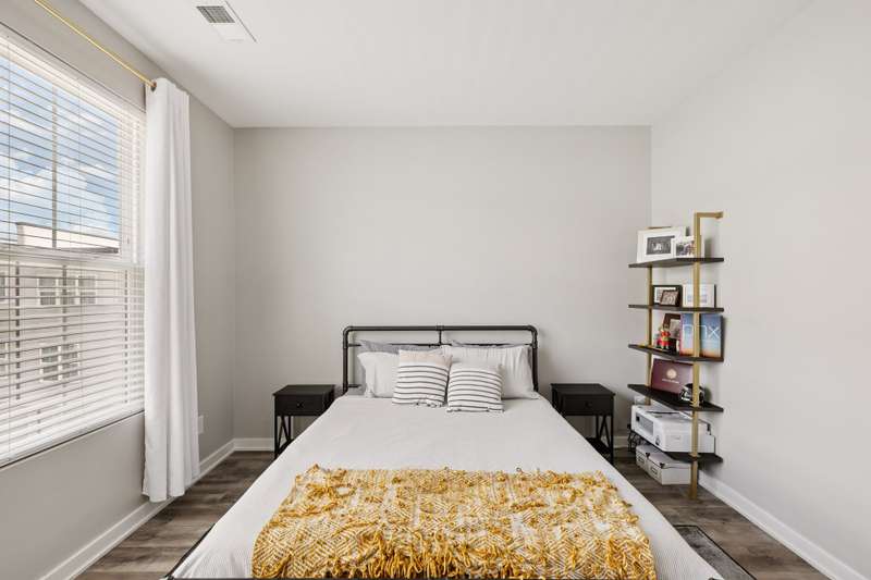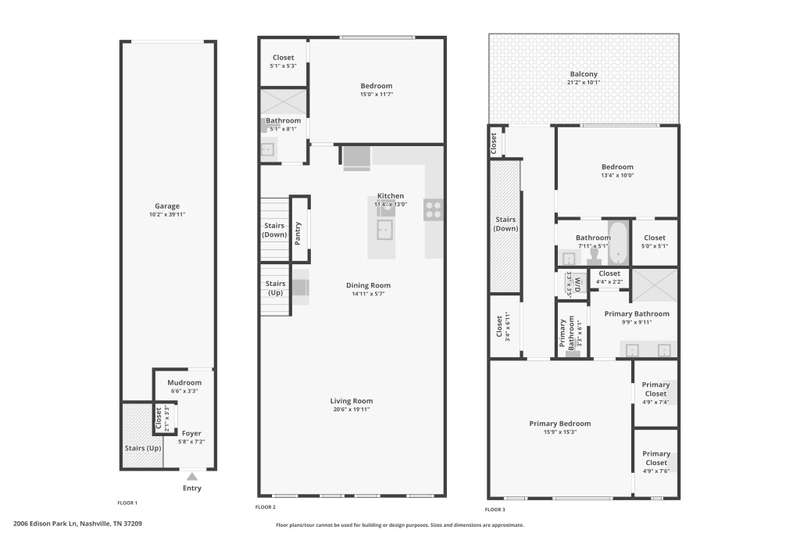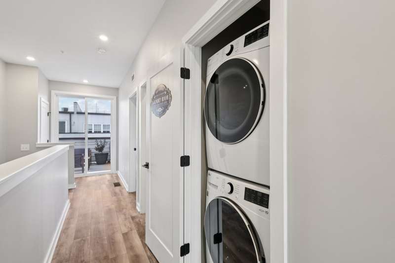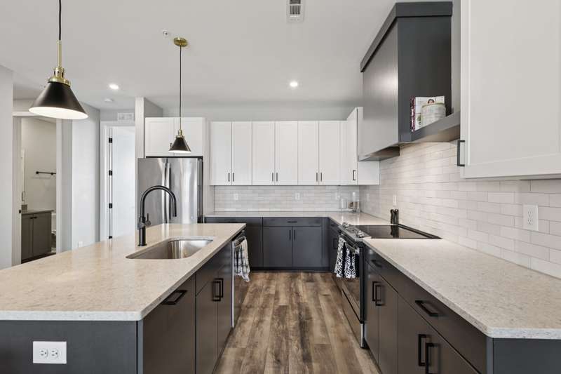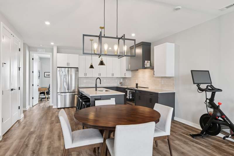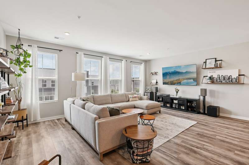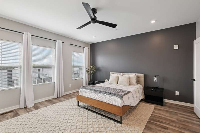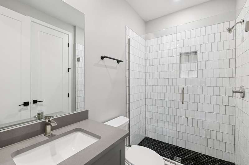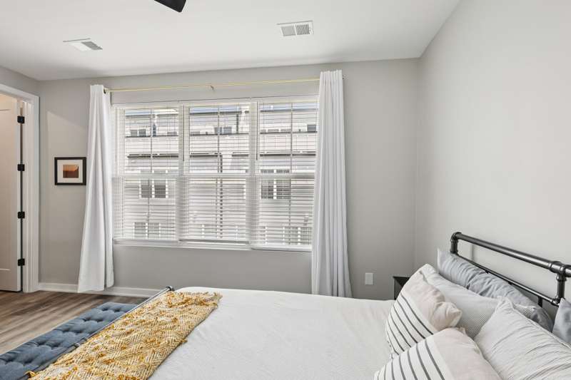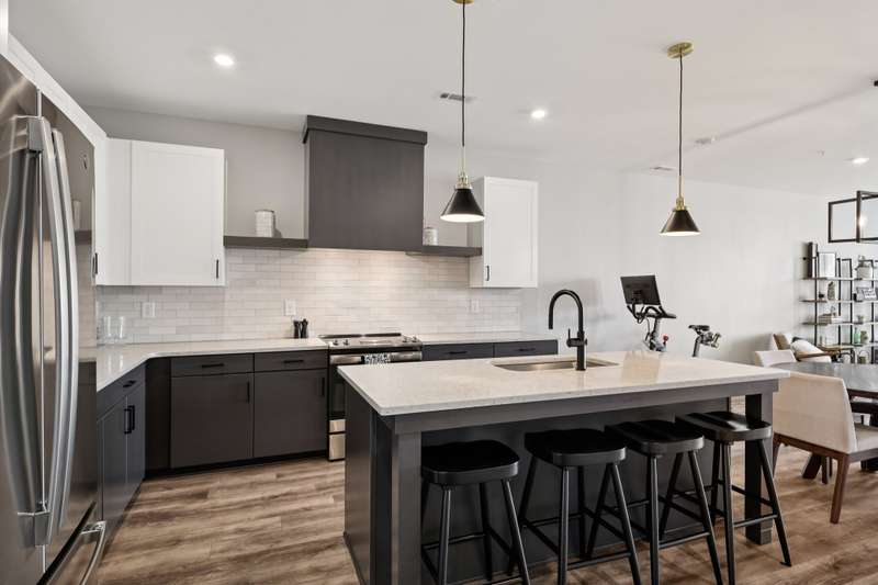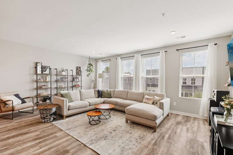 Move-in ready home in the Nations! This interior stacked flat built in 2022 features 3 beds, 3 baths, 2,274 sq. feet and a 2-car tandem garage. Exquisite condition. Entry foyer w/ drop-zone & closet located on the first floor. On the main level you've got a great spacious open living area. Kitchen w/ eat-in island, backsplash, stainless steel appliances, and a large pantry! Dining area w/ custom built-in bar w/ wine fridge flows into the living room w/ custom shelving and four large windows providing abundant natural light. Main level also features a bedroom w/ attached full bathroom and walk-in closet. Upstairs you'll find a large primary suite with two separate walk-in closets. Primary bathroom features a tiled walk-in shower and double vanities. Bedroom #3 w/ attached full bathroom and walk-in closet. Plus you'll be able to enjoy your own rooftop terrace! Custom closet systems installed in all closets. Installed blinds, curtains, and window screens throughout. All appliances included. Outdoor community amenities include a fire pit and dog run. So many great restaurants, shops, bars, and more within a 10-minute walk or bike ride, and this property is located only 5 miles from Downtown Nashville! 3D tour link available in media section.