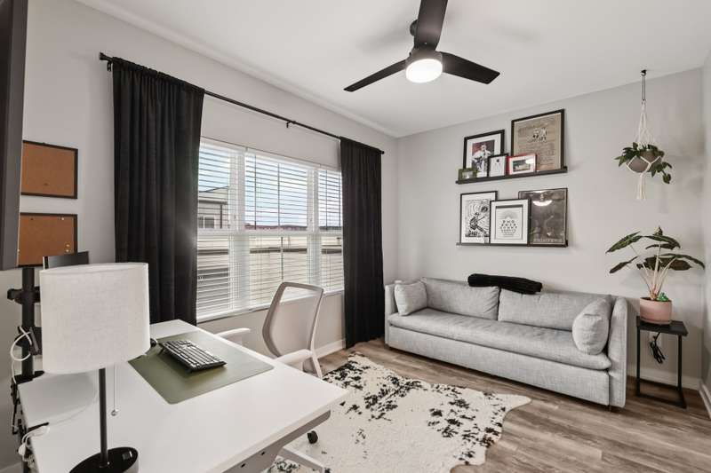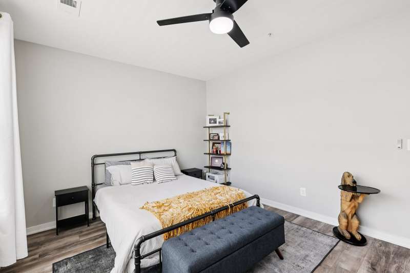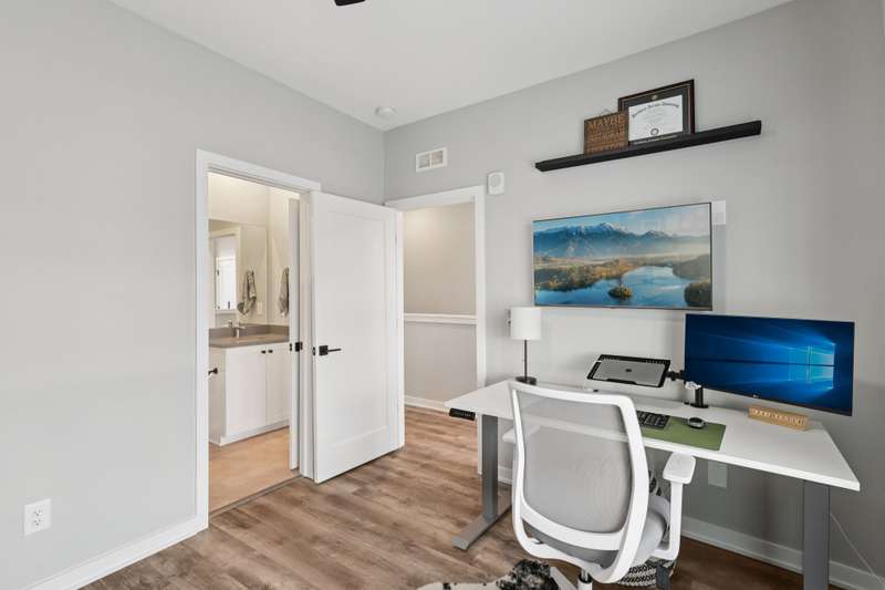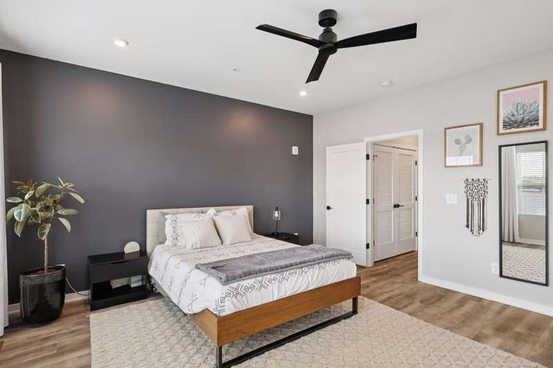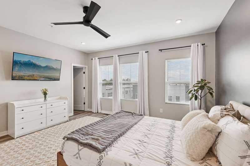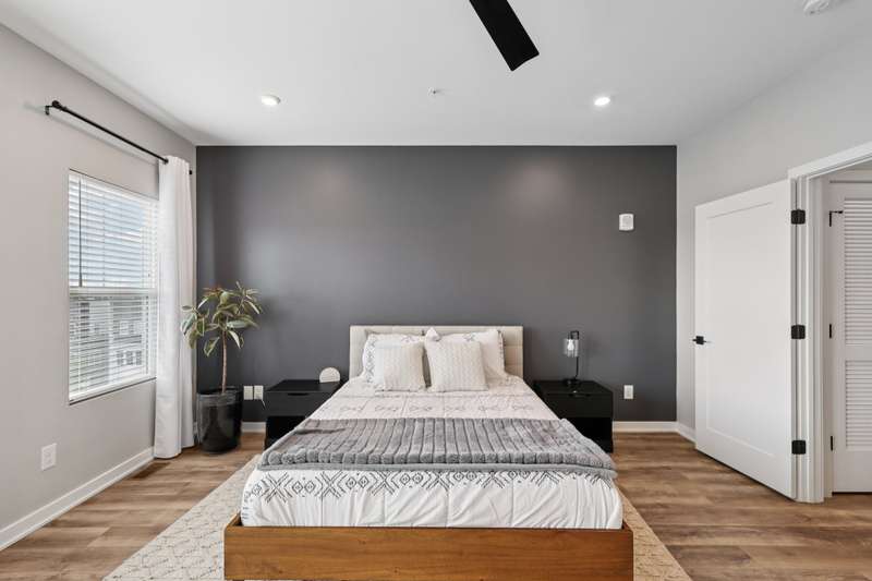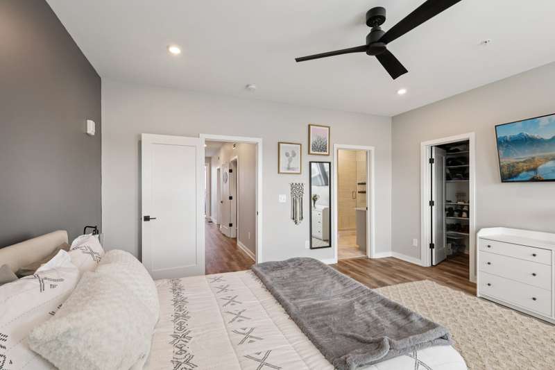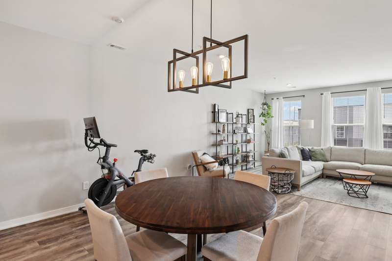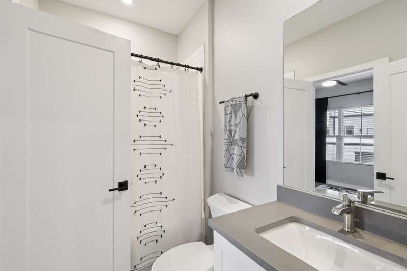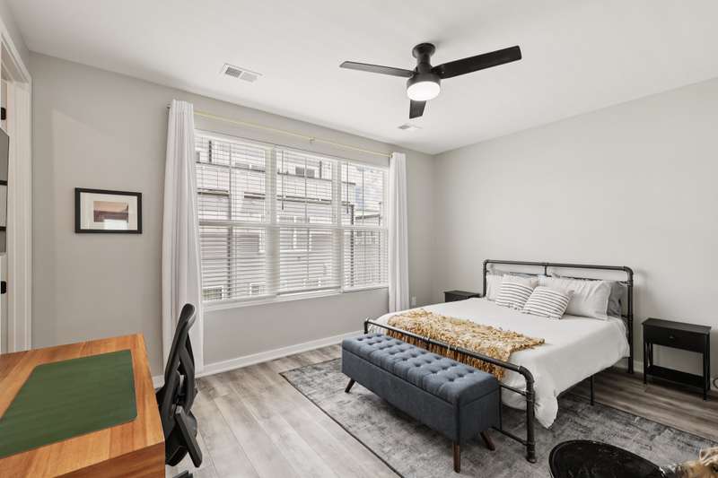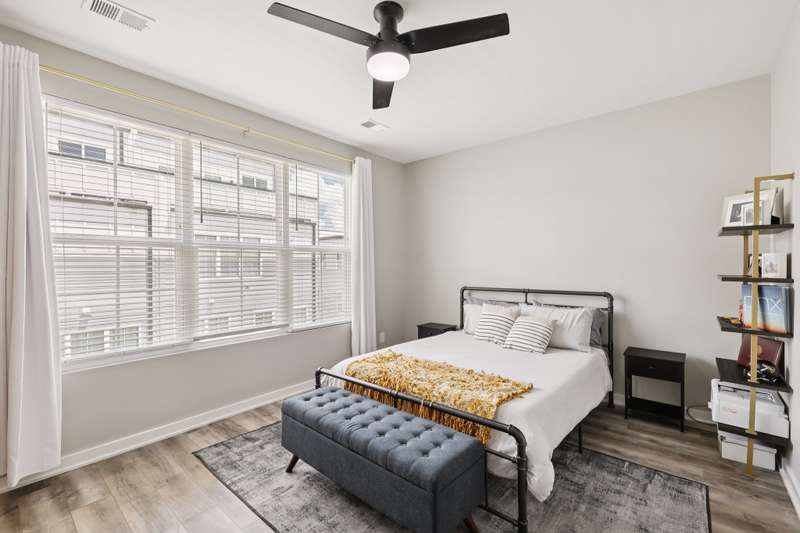 Move-in ready home in the Nations! This interior stacked flat built in 2022 features 3 beds, 3 baths, 2,274 sq. feet and a 2-car tandem garage. Exquisite condition. Entry foyer w/ drop-zone & closet located on the first floor. On the main level you've got a great spacious open living area. Kitchen w/ eat-in island, backsplash, stainless steel appliances, and a large pantry! Dining area w/ custom built-in bar w/ wine fridge flows into the living room w/ custom shelving and four large windows providing abundant natural light. Main level also features a bedroom w/ attached full bathroom and walk-in closet. Upstairs you'll find a large primary suite with two separate walk-in closets. Primary bathroom features a tiled walk-in shower and double vanities. Bedroom #3 w/ attached full bathroom and walk-in closet. Plus you'll be able to enjoy your own rooftop terrace! Custom closet systems installed in all closets. Installed blinds, curtains, and window screens throughout. All appliances included. Outdoor community amenities include a fire pit and dog run. So many great restaurants, shops, bars, and more within a 10-minute walk or bike ride, and this property is located only 5 miles from Downtown Nashville! 3D tour link available in media section.
