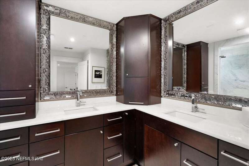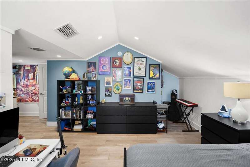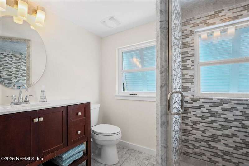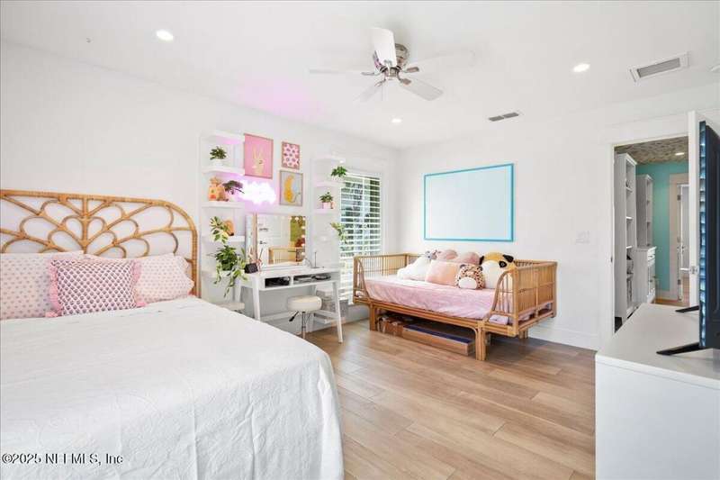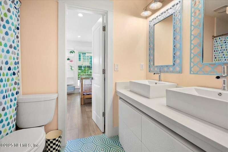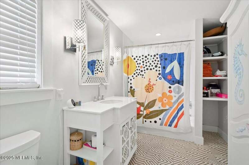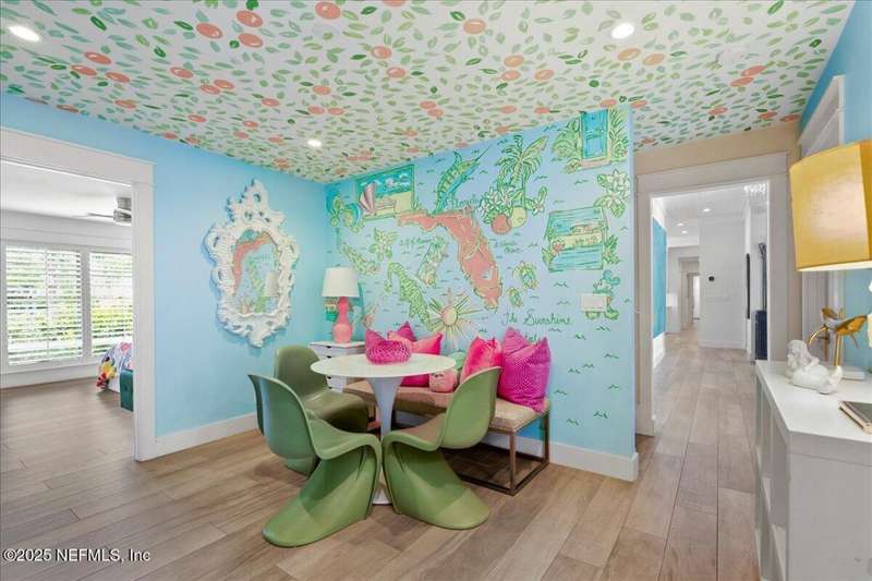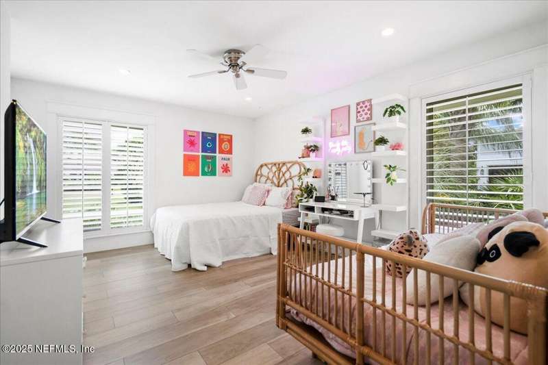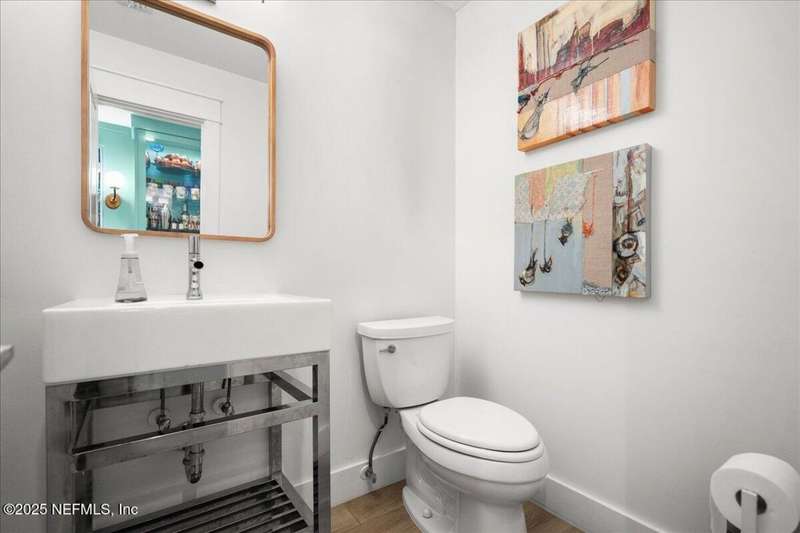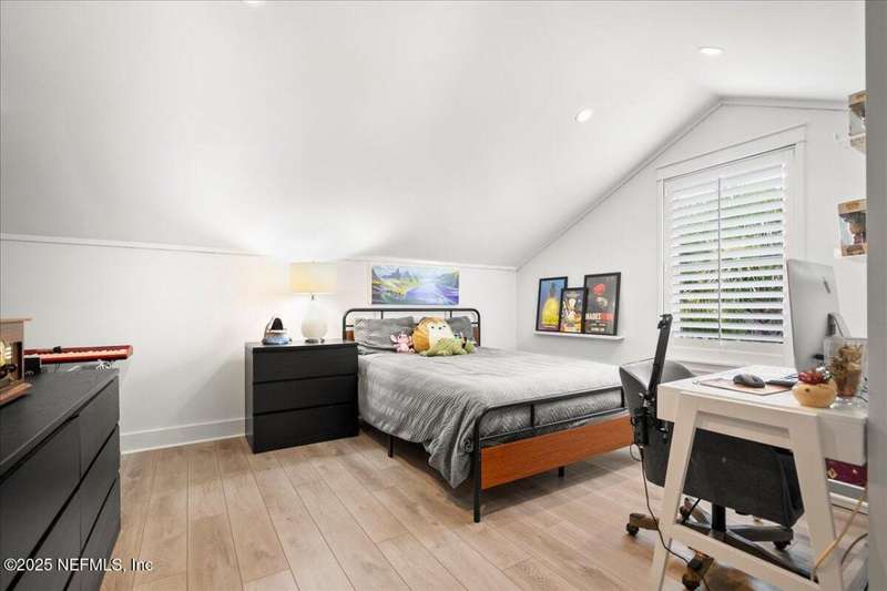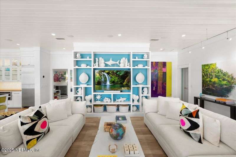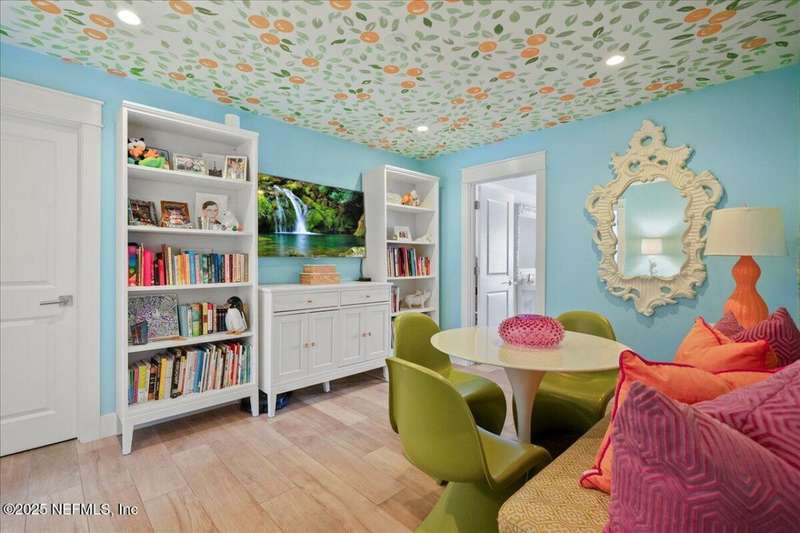 Live the ultimate Ponte Vedra Beach lifestyle in this beautifully updated pool home. Located on one of the most private cul de sac streets in Old Ponte Vedra, you are just a short walk to the beach or a quick bike ride to the Ponte Vedra Inn & Club or Lodge. This home features five bedrooms, four full bathrooms, and two half baths (including a pool bath) and offers thoughtful design and luxury finishes throughout. Step inside to find wood plank tile flooring and tongue and groove ceilings that add warmth and coastal charm to the main living areas. The amazing chef's kitchen is equipped with top-of-the-line Thermador appliances including a 48-inch gas cooktop with griddle, double ovens, separate built-in refrigerator and freezer, and an abundance of cabinetry and counter space. Adjacent to the kitchen is a custom wet bar with undercounter fridge drawers, a built-in nugget ice machine and a 98-bottle wine cooler. Also adjacent to the kitchen is the dining area which is surrounded by wrap-around windows overlooking the backyard's lush foliage and lagoon creating an incredible set up for entertaining family and friends. The large primary suite is a private retreat with separate his and hers walk-in closets and direct access to the laundry room for convenience. Two front bedrooms share a Jack and Jill bathroom, while a third downstairs bedroom features its own en suite bath. There is a spacious sitting area off the secondary bedrooms, ideal for a sitting room, study space or playroom. Upstairs, a private bedroom with en suite bath provides the perfect getaway for guests or older children. Additional features include a brand-new roof (April 2025) and a versatile mud room off the garage with ample storage that could easily be used as an office. Outside, enjoy your own tropical oasis with a pavered patio, large outdoor kitchen, beautiful landscaping, and a private dock overlooking the tranquil lagoon. Don't miss this rare opportunity to own a stunning home in one of Ponte Vedra Beach's most sought-after locations, just steps from the sand and waves.