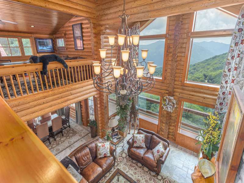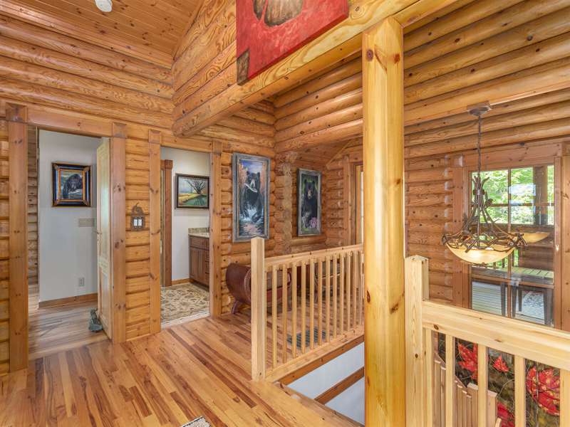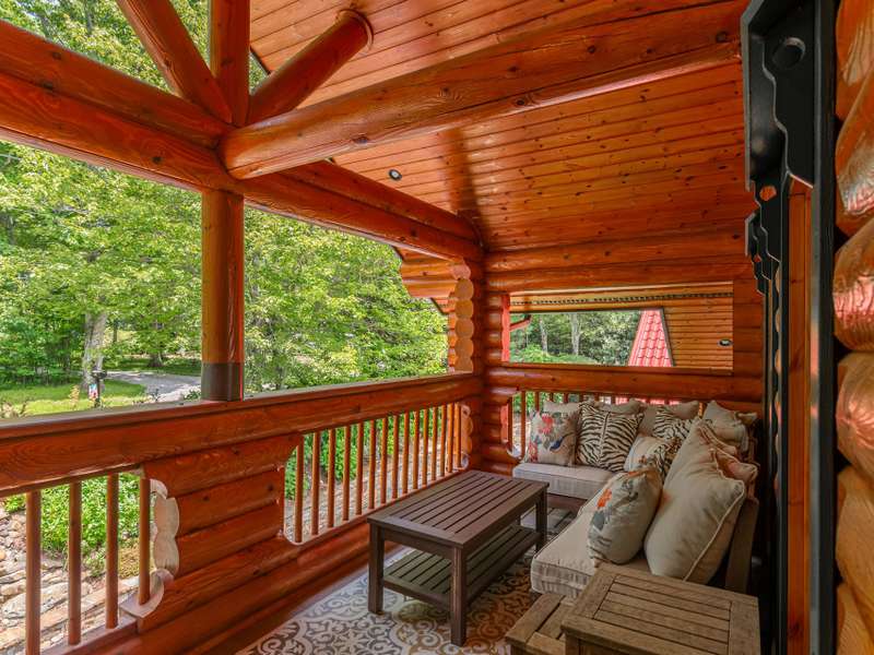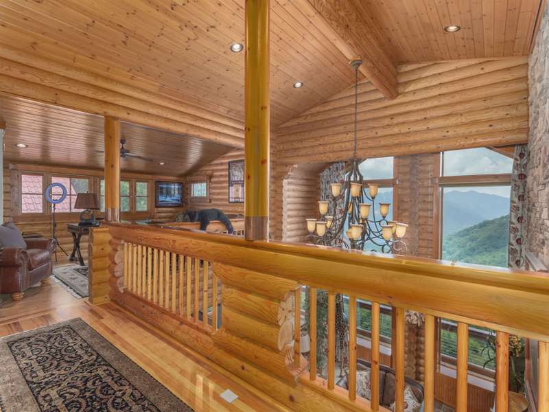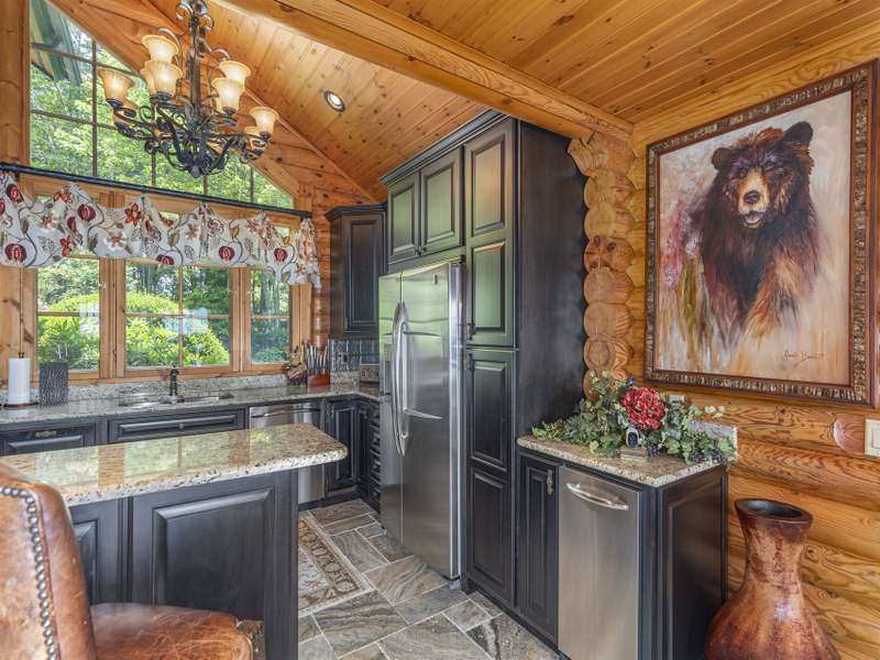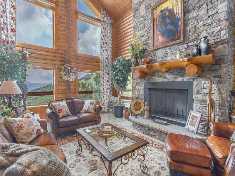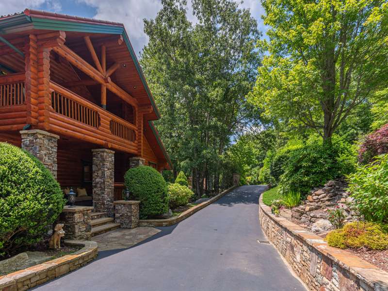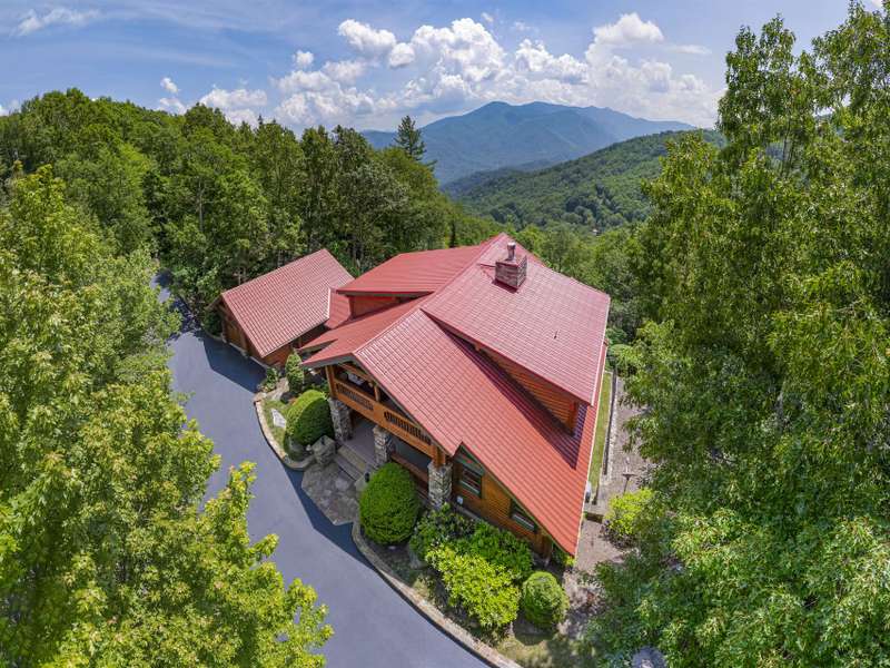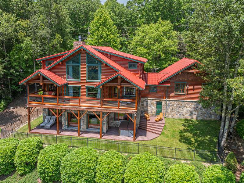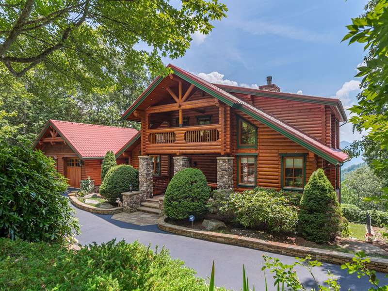 Discover this breathtaking Honka log home of Scandinavian design & precision nestled atop Maggie Valley in gated Laurel Heights. At 4800' elevation, enjoy cool temps and unparalleled long-range views from countless windows. Each of the three luxurious primary suites is a private retreat, boasting spacious rooms, walk-in closets and showers, and garden tubs for ultimate relaxation. For the culinary enthusiast, the main level chef's kitchen is seamlessly connected to the great room, which features a towering wall of windows framing magnificent south-facing views. Downstairs you'll find a second full kitchen, dining area, den, and a sprawling primary suite. The rec room/den is a great secondary entertaining space for gatherings. While mountain living fosters relaxation, the versatile upstairs loft serves as an ideal home office(or a spacious fourth sleeping room). Outside, the curated grounds are filled with exceptional, usable spaces to revel in the fresh mountain air.