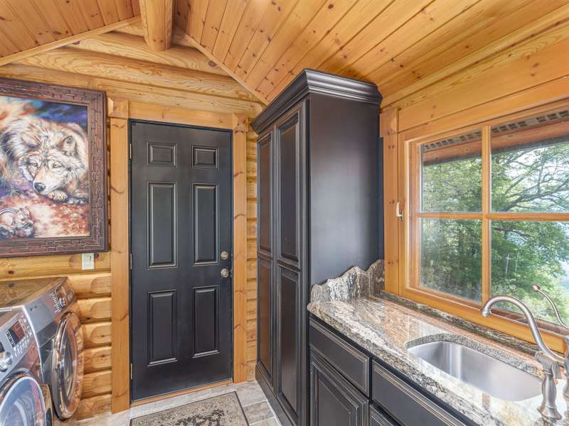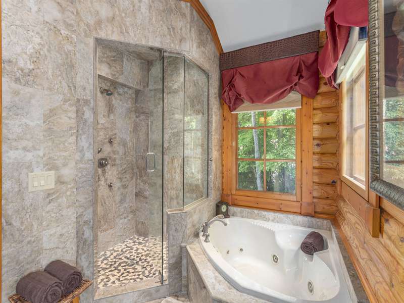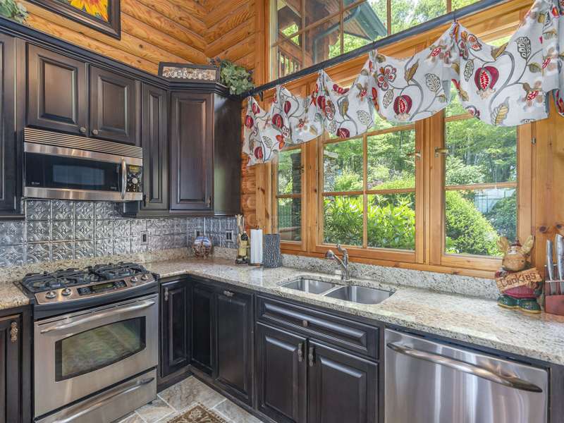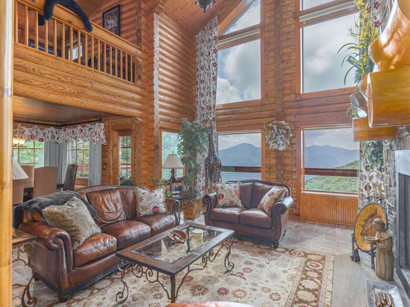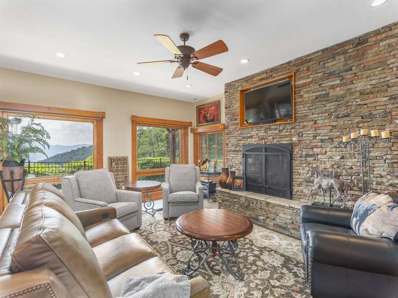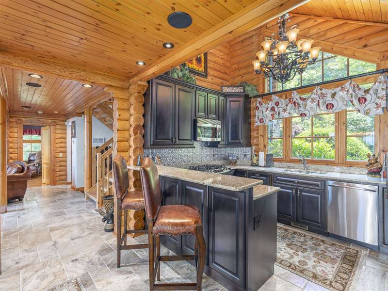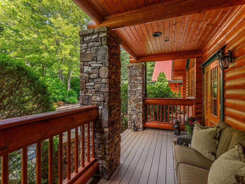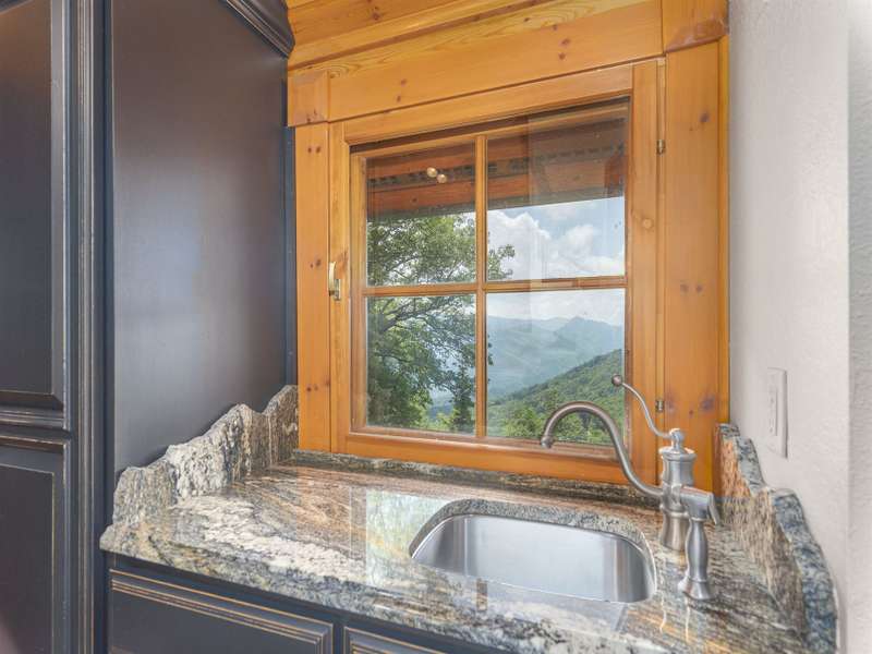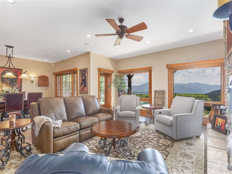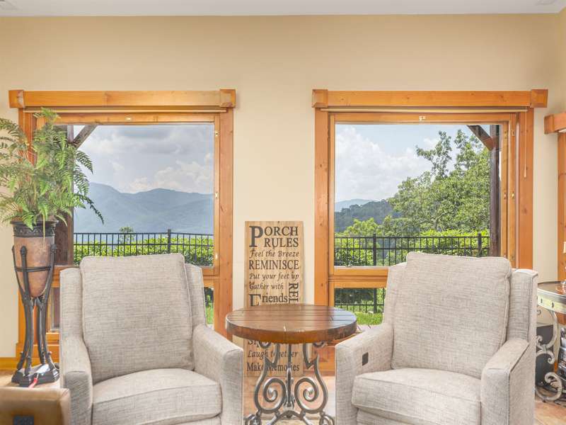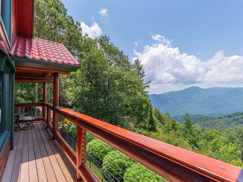 Discover this breathtaking Honka log home of Scandinavian design & precision nestled atop Maggie Valley in gated Laurel Heights. At 4800' elevation, enjoy cool temps and unparalleled long-range views from countless windows. Each of the three luxurious primary suites is a private retreat, boasting spacious rooms, walk-in closets and showers, and garden tubs for ultimate relaxation. For the culinary enthusiast, the main level chef's kitchen is seamlessly connected to the great room, which features a towering wall of windows framing magnificent south-facing views. Downstairs you'll find a second full kitchen, dining area, den, and a sprawling primary suite. The rec room/den is a great secondary entertaining space for gatherings. While mountain living fosters relaxation, the versatile upstairs loft serves as an ideal home office(or a spacious fourth sleeping room). Outside, the curated grounds are filled with exceptional, usable spaces to revel in the fresh mountain air.