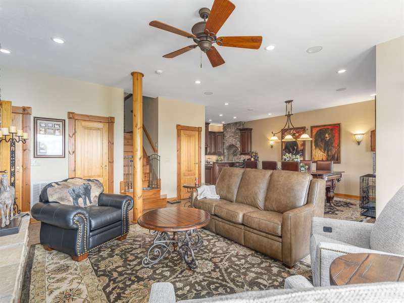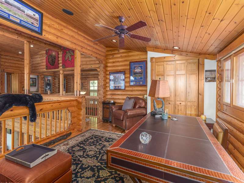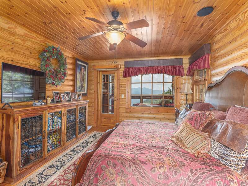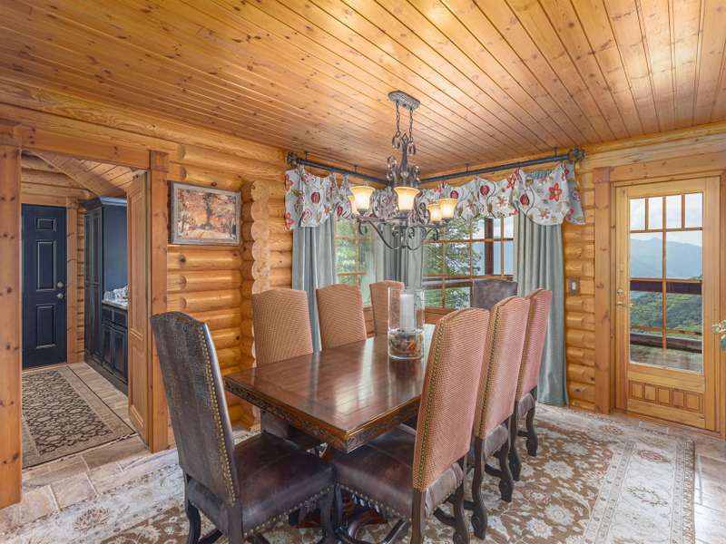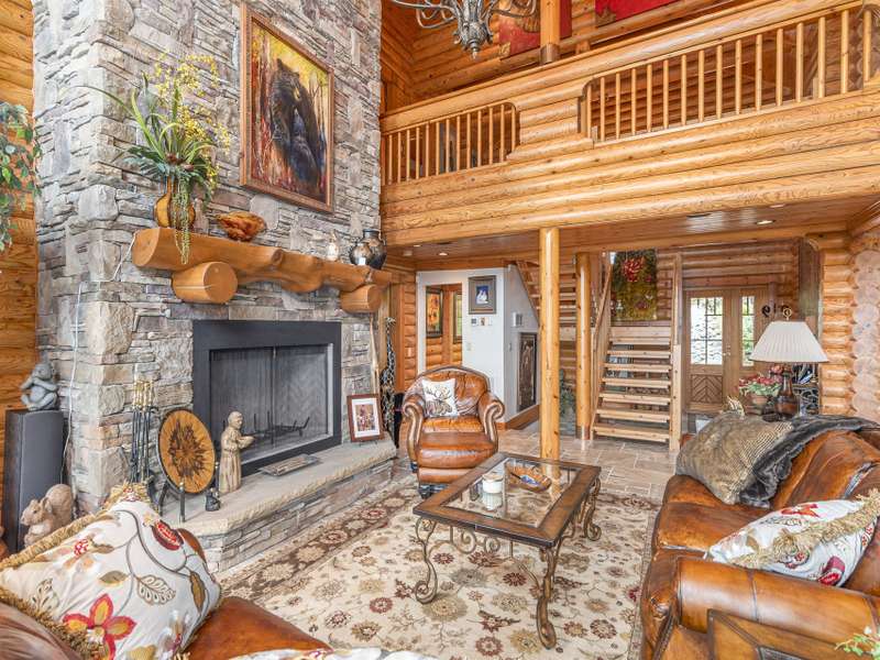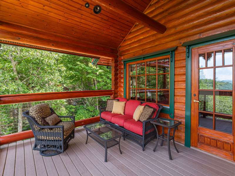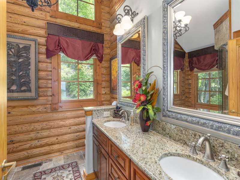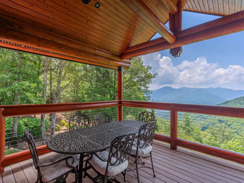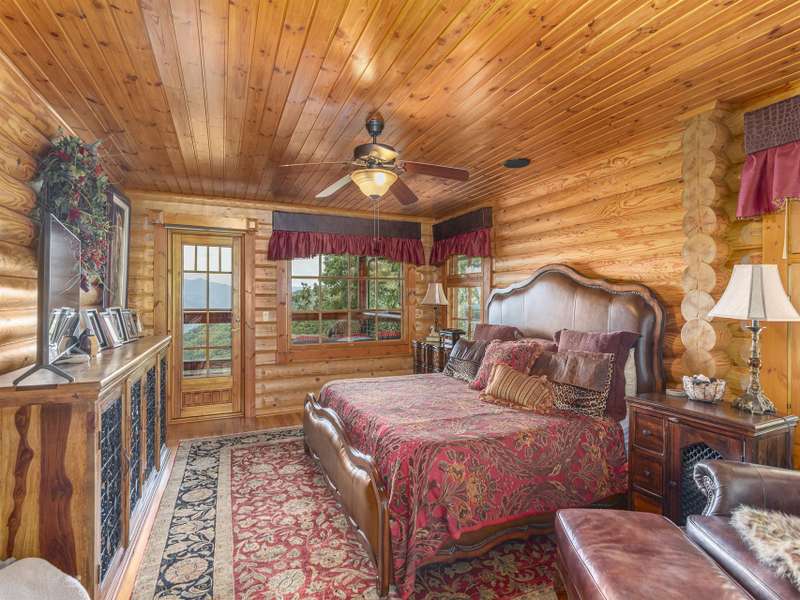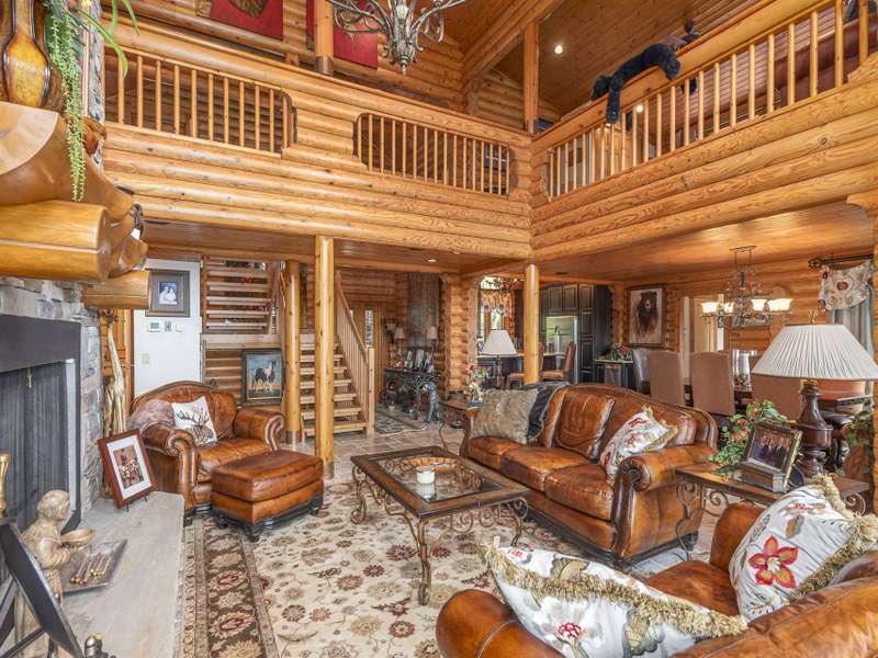 Discover this breathtaking Honka log home of Scandinavian design & precision nestled atop Maggie Valley in gated Laurel Heights. At 4800' elevation, enjoy cool temps and unparalleled long-range views from countless windows. Each of the three luxurious primary suites is a private retreat, boasting spacious rooms, walk-in closets and showers, and garden tubs for ultimate relaxation. For the culinary enthusiast, the main level chef's kitchen is seamlessly connected to the great room, which features a towering wall of windows framing magnificent south-facing views. Downstairs you'll find a second full kitchen, dining area, den, and a sprawling primary suite. The rec room/den is a great secondary entertaining space for gatherings. While mountain living fosters relaxation, the versatile upstairs loft serves as an ideal home office(or a spacious fourth sleeping room). Outside, the curated grounds are filled with exceptional, usable spaces to revel in the fresh mountain air.