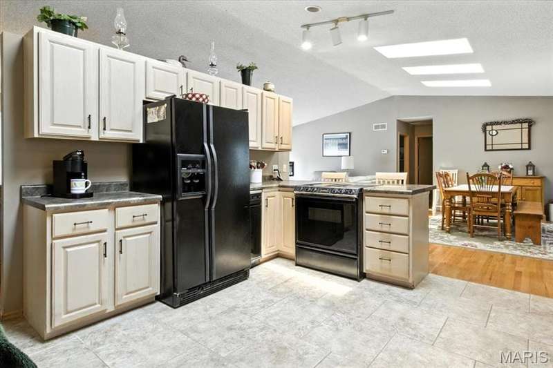 Incredible price reduction. Make your appointment today or come to the Open Saturday Sept. 13, 1-3pm. Very desirable open floor plan ranch Vaulted ceilings.3 large bedrooms/2 full baths, great room has a beautiful view of lots of trees and Seasonal View of the lake. Meticulously maintained, shows like a new home. Full unfinished Lower Level has the opportunity to double your living space, rough in for bath is already there! Fenced yard for the kiddos & pets. New Roof 2017 and there are 5 skylights which provide lots of natural light!. Updates include...Shared well with new pump installed 2022, private septic updated to include an alarm system for safety. New Hot water heater & water softener installed 2019. Two car oversized attached garage leads into Mudroom/main floor laundry room.