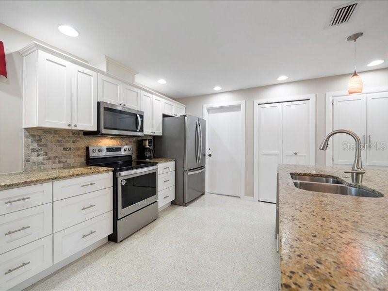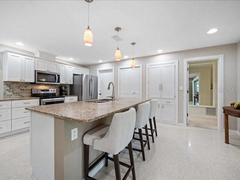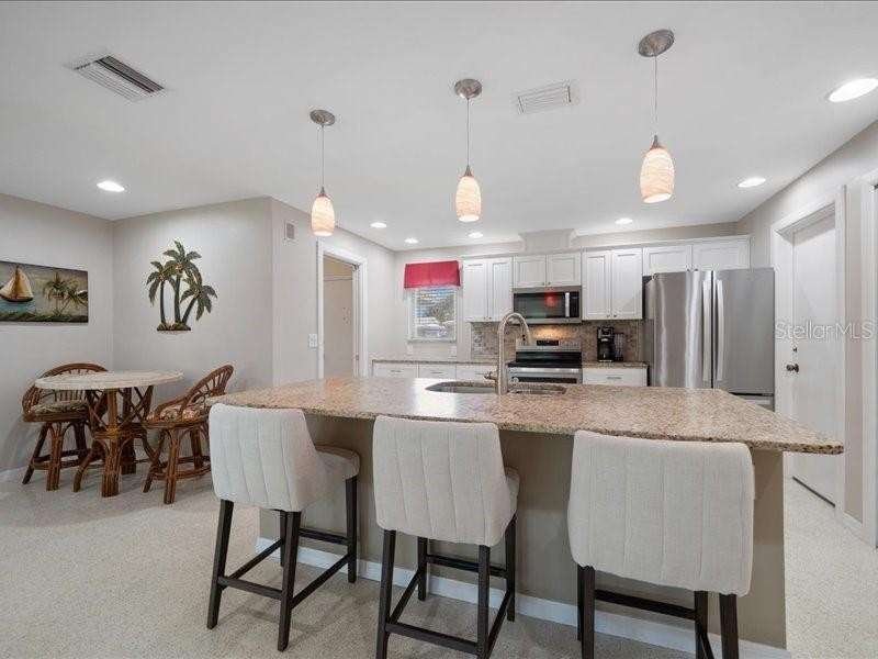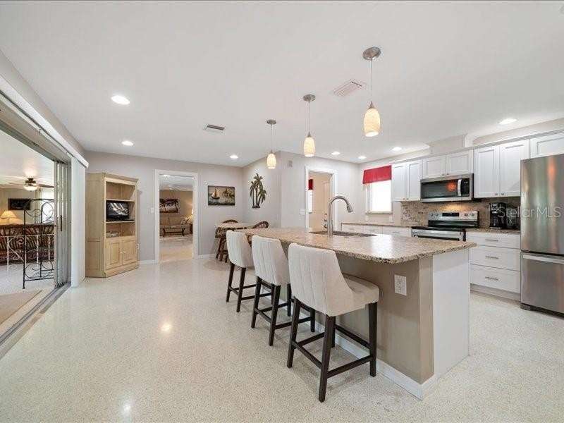 Under contract-accepting backup offers. Welcome to 14583 Anchorage Circle, a stunningly updated 3-bedroom, 2-bath residence in the resort-like community of Imperial point in the heart of Seminole. This home offers the perfect blend of modern comfort and Florida living with a spacious open layout and a huge professionally maintained yard ideal for entertaining, gardening, or simply enjoying the sunshine. Located in a highly desirable non-flood zone ( yet a few minutes drive from the beautiful Indian Rocks Beach) this property gives you peace of mind and an unbeatable lifestyle. The community is rich with amenities, featuring two sparkling pools, two clubhouses, a fitness center, library, dock, boat slips, pickleball courts, and tennis courts—everything you need to live, play, and relax just steps from your front door. Inside, the home has been thoughtfully updated with contemporary finishes, a bright and airy feel, and plenty of space for both family and guests. With three comfortable large bedrooms and two stylish bathrooms. All bedrooms have shades and stylish curtains. Primary room offers a large walk in closet and an updated en suite bathroom. A second walk in closet in the hallway. White Soft close kitchen cabinets and drawers with 2 wall pantries. All stainless steel appliances. Leather textured granite countertops and island with a breakfast bar. Indoor, large Laundry room with a sink that was added by current owner. A beautiful pergola welcomes you to the backyard and provides shade. Beautiful light and bright terrazzo floors in all common areas. Two car garage, new hurricane enforced garage door with garage opener. Epoxy garage flooring, tons of storage cabinets and work areas. The home electrical and AC duct work have been also updated and a whole house air filtration system is installed. New roofs, AC, hot water heater, windows. All updates are from 2020 or newer. Over 100k in updates makes this the ideal home to just move in and start enjoying from day one. Some pieces of furniture maybe included. This beautiful, comfortable home is move-in ready and designed for easy Florida living. It combines style, comfort, and an unmatched lifestyle in one of Seminole’s most sought-after communities. Buyers and buyers' agent to confirm all measurements.