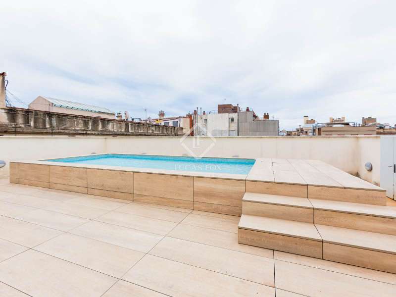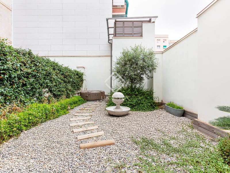 New build duplex, built in 2021, in excellent condition, located in the Eixample Dreta district, on a quiet street near Passeig de Sant Joan, Avinguda Diagonal, and Passeig de Gràcia. Centrally located, well-connected, with all amenities within walking distance. The property is distributed over two floors. On the ground floor, there is a spacious and bright dining room living room with direct access to a 100 m² private garden , ideal for enjoying the outdoors. The open-plan kitchen, with an American island, is custom-built, featuring designer marble countertops and details. It is fully equipped with integrated Bosch appliances . There is also a guest toilet on this floor . On the upper floor there are two suites , each with its own full bathroom , and a practical separate area for washing machine and storage. The apartment has ducted air conditioning and heating, wooden floors, high-efficiency enclosures, and very high-quality finishes. La Finca features a communal pool and rooftop solarium, with unobstructed views and excellent privacy. Includes a large parking space in the first basement of the building.