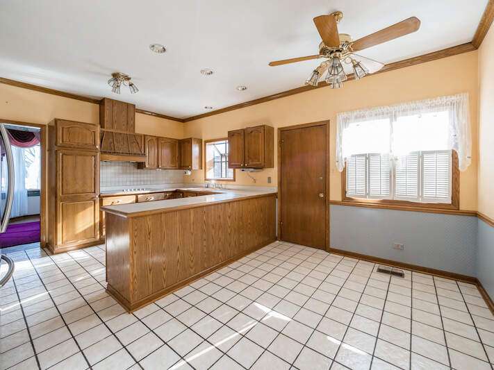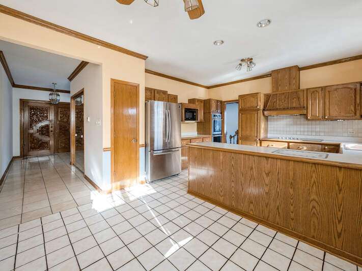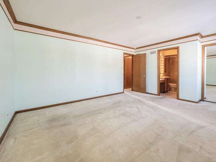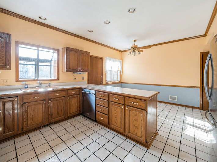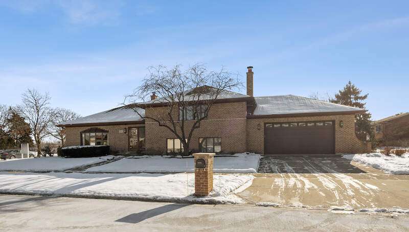 Discover this delightful, oversized brick split-level residence with impressive curb appeal. This quality-built home features thoughtful design elements, including custom moldings and built-ins, as well as custom hand-carved doors. The sunken living room, with a charming bay window, allows for abundant natural light and seamlessly connects to a formal dining area-perfect for entertaining. The spacious kitchen is well-equipped with generous cabinetry, a pantry, central peninsula, stainless steel appliances, built-in double oven, and Viking 6-burner cooktop, all complemented by a spacious breakfast area for casual dining. Upstairs, you'll find a primary en-suite with an and walk-in closet, along with two additional good-sized bedrooms and a hall bath. The lower level features a welcoming family room complete with built-in cabinets, a wet bar, and a stone fireplace, along with a fourth bedroom that's ideal for a home office. This versatile space provides a comfortable area for unwinding and leisure, creating a sense of a home within a home. This level also includes a large bathroom and easy access to the attached garage with plenty of storage. Additional space in the sub-basement is an unexpected surprise, including a bonus room to personalize as you see fit and a laundry/storage room. Recent upgrades include new carpeting, a water heater, and a sump pump. Tucked into a private corner lot and conveniently located just minutes from shopping, dining, transportation, and major roads, this home is ready for you to move right in. It also offers the flexibility to update at your own pace according to your needs or vision. Don't miss this exciting opportunity! As-is sale.