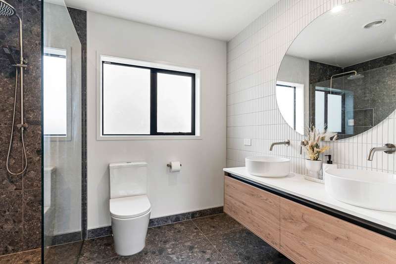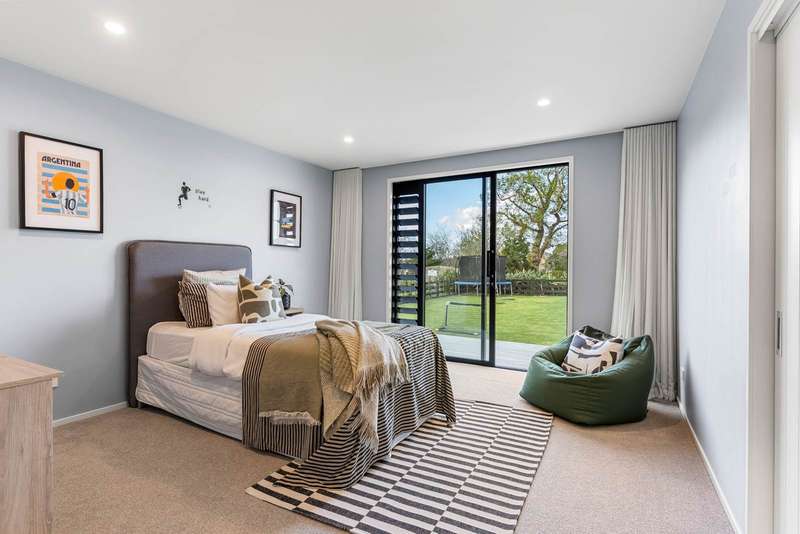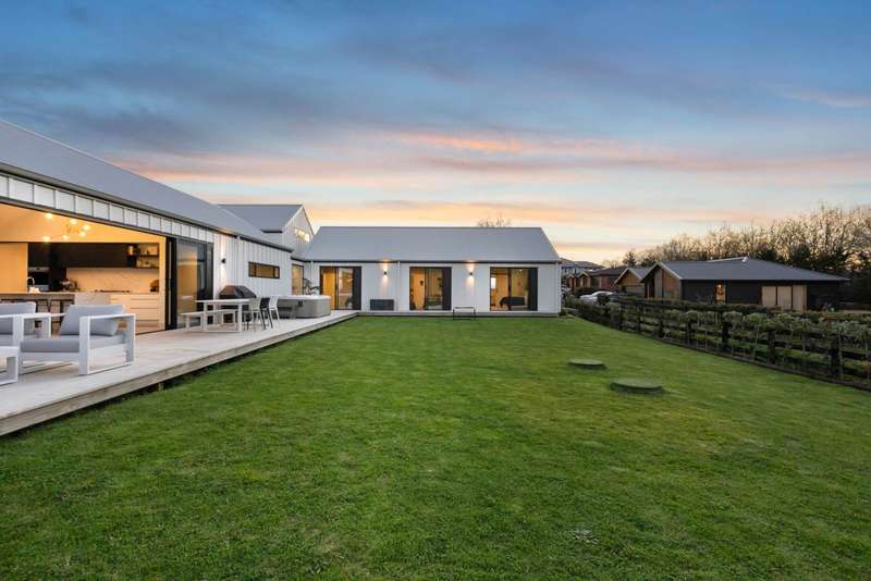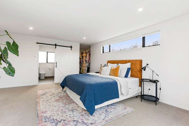 Set on a generous 1,188m² section, this 302m² north-facing bespoke residence has been designed with both everyday comfort and effortless entertaining in mind. Bold architectural lines, premium finishes, and seamless indoor–outdoor flow to a sun-drenched deck and landscaped lawn make this home as functional as it is striking. The layout is cleverly divided into two distinct wings: Living & Entertaining Wing – A light-filled open-plan kitchen, dining, and living area with a soaring vaulted ceiling and walk-in scullery. A separate media room offers a cosy retreat, while a spacious private guest suite above the double garage provides comfort and independence. Bedroom Wing – A generous master suite with walk-in wardrobe and tiled ensuite, plus two additional large bedrooms with direct outdoor access. A fully tiled family bathroom, two separate toilets, dedicated laundry, and private study complete this side of the home. Positioned just moments from Clevedon Village, the showgrounds, and the popular weekend farmers market, this home captures the perfect balance of modern luxury and relaxed country living. Deadline sale: Closes on Wednesday 22 October 2025 at 1:00PM (unless sold prior)