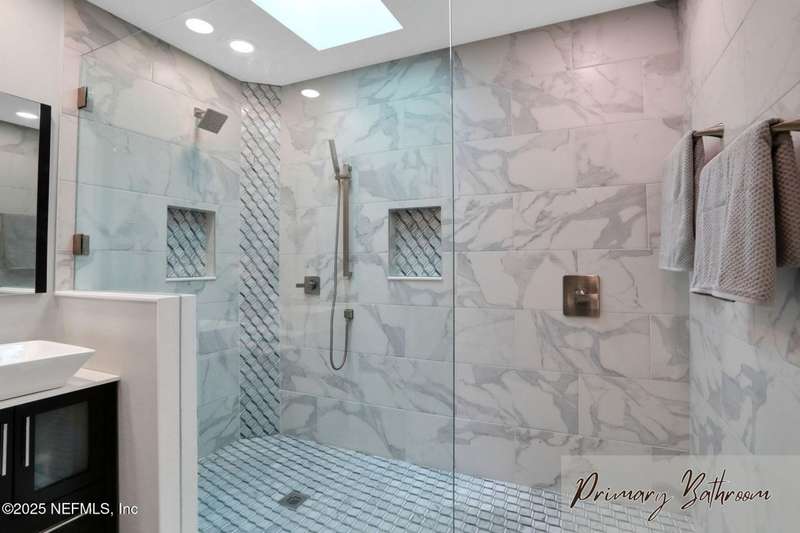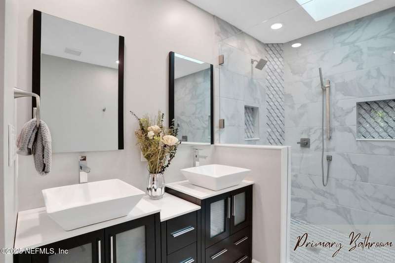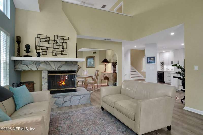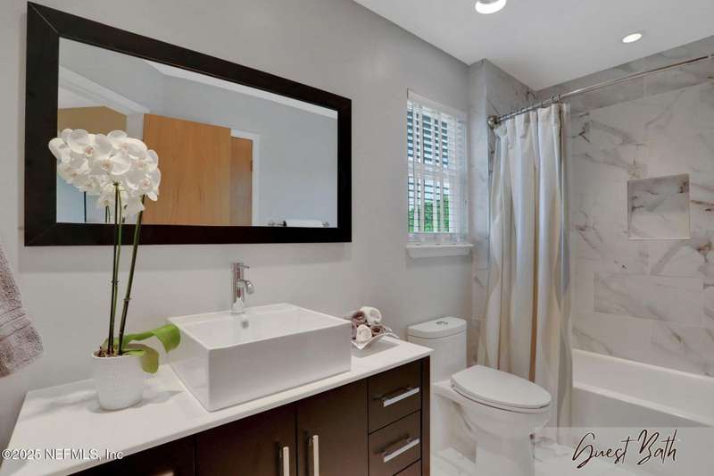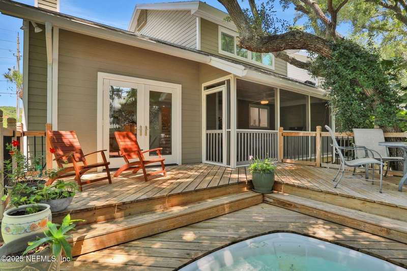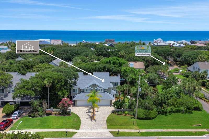 Beachside, located on the ocean side of Seminole Road is an intimate neighborhood of just 35 single-family homes and 10 duplexes. Residents enjoy all the therapeutic benefits of living seaside and perhaps their favorite part is the private ocean walkway that connects Beachside Court directly to Beach Avenue, giving exclusive access to the Atlantic without the crowds and traffic.Owned since the home was just 2-years young, the owner has continuously renovated and rejuvenated this home through the years and it shows in every detail. On the corner of Seminole Road and Beachside Court, this precious 40' x 100' corner lot is contestably the best duplex lot in Beachside. There is no neighbor to the south, instead, there are peaceful park-like views of the community's tropically landscaped lagoon complete with a beautiful center fountain. It is a private slice of paradise right outside your windows. From the moment you step inside, you'll appreciate the unique four split-level design that creates a more comfortable living experience with fewer stairs per floor and enhanced privacy throughout.Up a few stairs from the foyer, garage and renovated powder room is the main living level of the home. The space features soaring vaulted ceilings, a wood-burning fireplace and cathedral-like windows that flood the space with natural light and showcase those gorgeous views. The recently renovated kitchen is absolutely stunning with soft-close white shaker cabinetry, quartz counters, stainless appliances, and a large gathering island perfect for entertaining and family gatherings. Three pantries provide ample storage for the home chef, while the separate breakfast nook includes a beverage station with built-in wine rack and cocktail fridge. Step outside to a private oasis that features a charming screened porch and spacious wood deck with a built-in hot tub. The lush tropical landscaping creates a serene backdrop where you can often hear the ocean's waves and feel the coastal breeze.The laundry room deserves special mention with its abundance of storage cabinetry, dedicated folding station, and convenient pocket door access from the kitchen. All appliances including the washer and dryer stay with the home, making the move-in process so much easier.The next level has the generously sized guest bedroom and an adjacent renovated guest bath. Up a few more stairs to the top floor with the sun-lit oversized primary bedroom with skylights, a wall of tree-top view windows, dual closets and a spectacularly renovated ensuite bath. Also on this level is the large loft that is open to the living area below. Currently used as an in-home office, this versatile multi-purpose space could easily be converted to a 3rd bedroom. On the exterior, the home has durable and long-lasting fiber-cement siding. A paver drive and walkways were recently installed and all of the landscaping refreshed and the garage door and outdoor lighting fixtures were replaced. The roof was replaced with a 50-year shingle in 2021 and the HVAC, with a 10-year warranty was replaced in 2019. Nothing but the best, the water heater was replaced in 2019 with an AO Smith ProLine Commercial Grade water heater. On the inside, except for the bedrooms and baths, all of the flooring has been replaced with coastal inspired luxury vinyl plank flooring. The bedrooms have premium carpet and the baths have luxury tile. The ocean is practically at your door step but if you choose to venture further, the Atlantic Beac