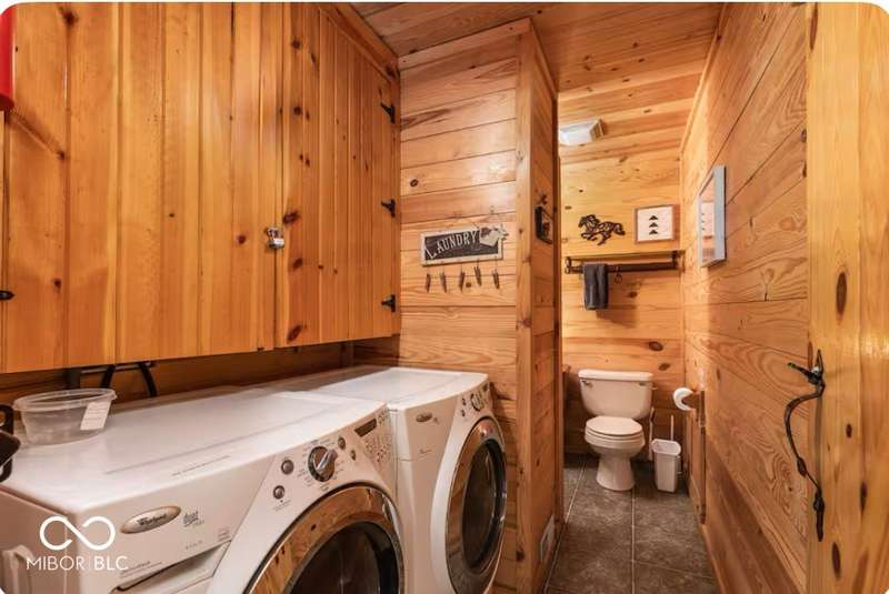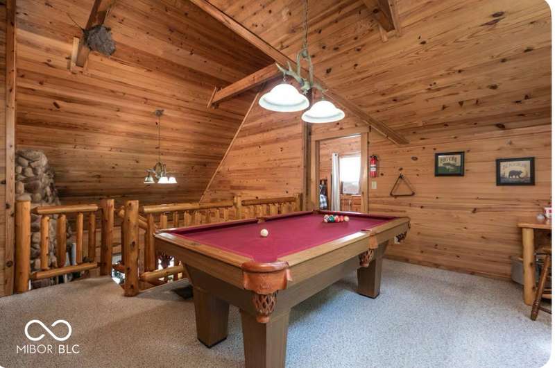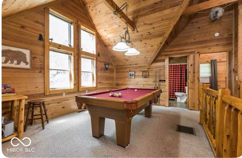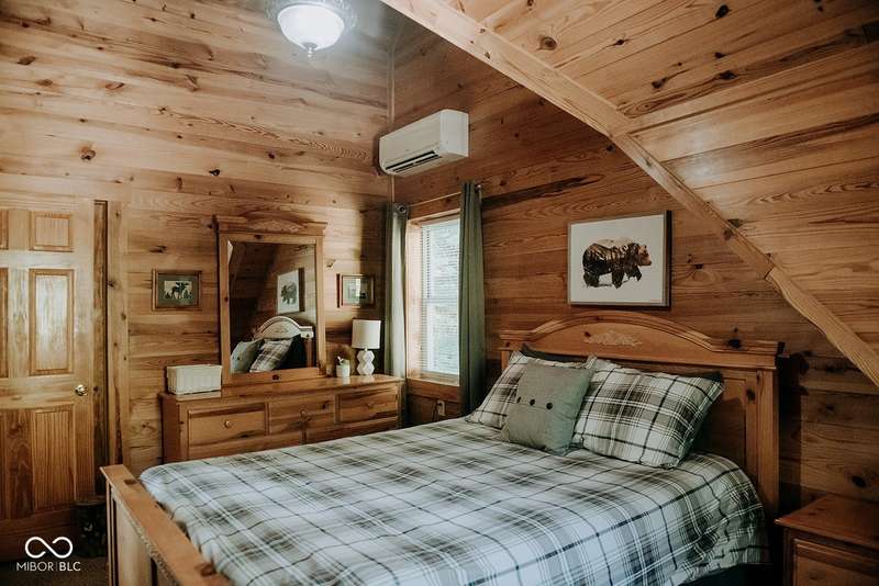 Looking to own a profitable, established Airbnb cabin in the heart of Brown County?! This is it! Ideally situated just a mile from Brown County State Park and 15 minutes from Bloomington, this 6-person cabin has become a sought-after destination for tourists visiting Nashville, attending events at IU, or celebrating nearby weddings. With an impressive 80%+ occupancy rate and no vacant weekends, this cabin is a proven, high-demand investment! Nashville also has a 98% "Investability" rating on AirDNA! This turnkey cabin comes fully furnished: equipped with everything needed to continue its success as a popular, short-term rental, including furniture, linens, hot tub, televisions, electronic keypads, and Ring cameras. Step into the main floor and enjoy the cozy, open-concept living room with a gas fireplace, perfect for unwinding. The fully equipped kitchen is ideal for family meals, and a half-bathroom with washer and dryer is nearby. The master suite includes a king-size bed, screened porch with hot tub, and an ensuite bathroom with a jacuzzi tub/shower. Upstairs, a spacious loft offers a game of pool or board games, while two guest bedrooms with queen beds provide comfort. One bedroom connects to a guest bathroom with another jacuzzi tub and shower combo. Both upstairs rooms have Mitsubishi heating and cooling units. The outdoor space features a front porch swing, rocking chairs, a fire pit, gas grill, picnic table, and a screened-in hot tub for ultimate relaxation. Cozy Bear Cabin is an ideal investment, with consistent bookings and immediate revenue. Don't miss this opportunity in a prime Brown County location.