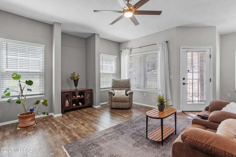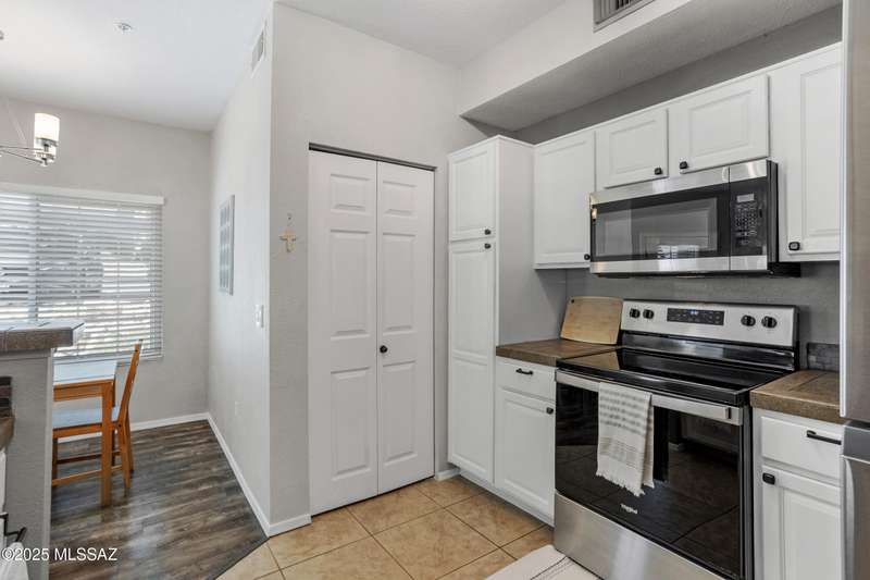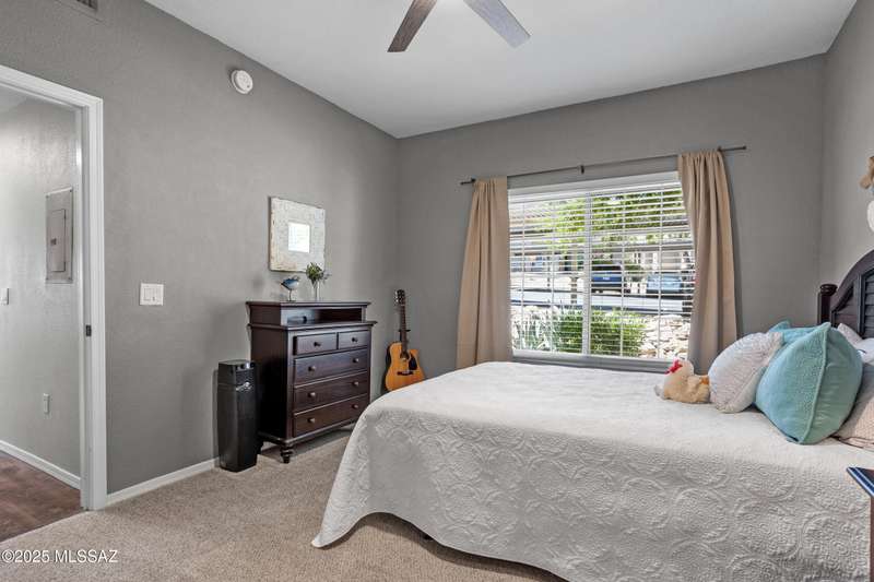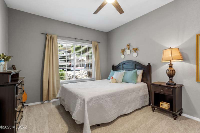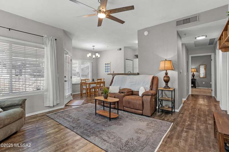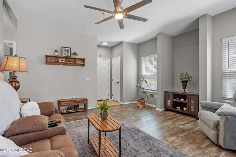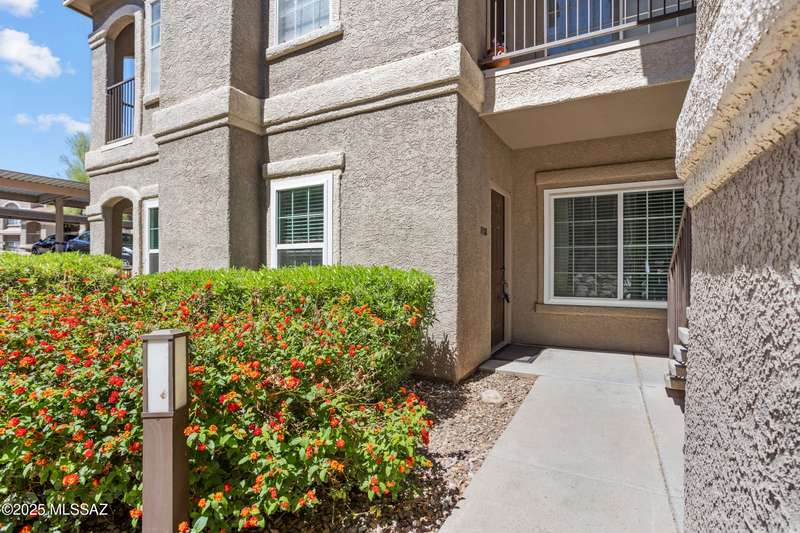 Ground floor condo in the highly desirable Boulder Canyon community in Oro Valley. Enjoy resort like living in this corner unit with laminate wood flooring in the main living area, new carpet in the bedrooms and new Low-E windows. The spacious kitchen has lots of work area and stainless steel appliances and a reverse osmosis system. There are two large bedrooms with very roomy walk-in closets. Both bathrooms have been upgraded with new cabinetry. The clubhouse, heated pool and spa, and fitness center are a short walk across the parking area. Love hiking? Catalina State Park is just down the road and the Huckleberry Loop is close by as well as The Oro Valley Marketplace, the Oro Valley Hospital, shops and restaurants.