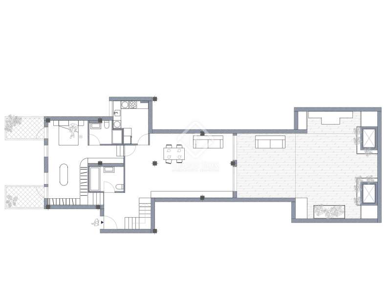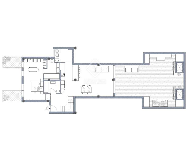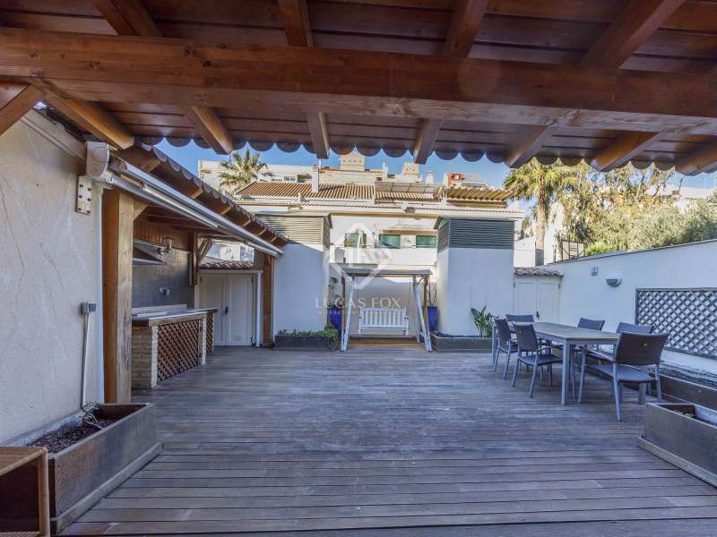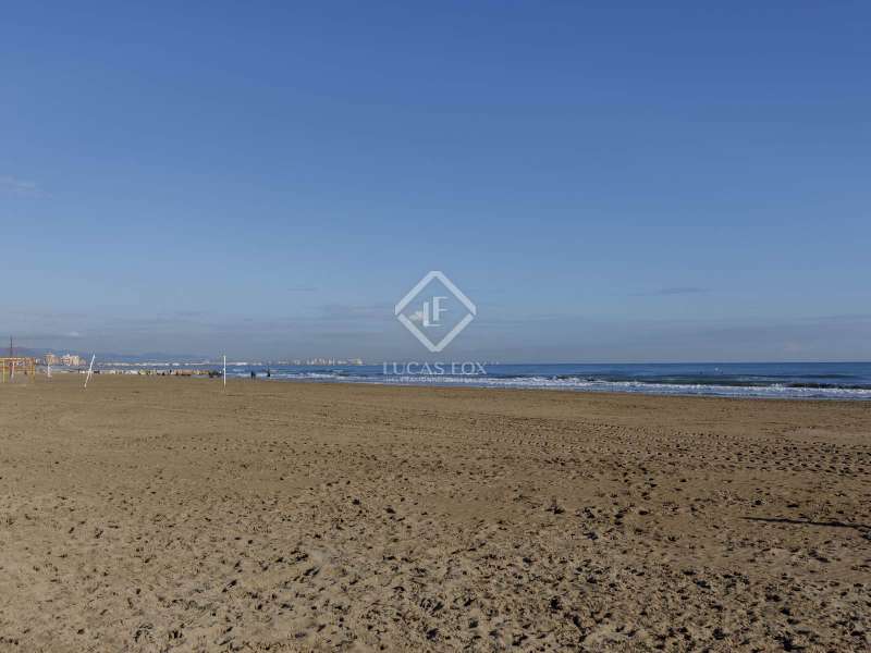 Lucas Fox presents this impressive duplex apartment, with several terraces, just a few meters from the famous Malvarrosa beach in Valencia, in an ideal setting to enjoy the coast. This property is spread over two distinct floors and also includes two large parking spaces in the price. Entering the property on the main floor , we are greeted by a spacious and bright living-dining room , which connects perfectly with the kitchen. The latter is equipped with appliances and storage space. From the living room, through a large window, we access a generously sized terrace with a wooden floor . Part of this terrace is covered by a porch, to enjoy outdoors all year round. In addition, it has a built-in barbecue, perfect for social or family gatherings. On this same floor, there are two bedrooms: the master bedroom, which has a private bathroom with a shower, and another bedroom that is currently used as an study. Both bedrooms have access to a small private terrace. The property also has a second full bathroom with a shower, which is designed to serve both the second bedroom and possible guests. In total, the surface area of the three terraces is approximately 90 m², which offers a large exterior space to enjoy outdoors. On the lower floor , we find a large room that is currently used as a living room and study, but which could easily be divided to create two additional bedrooms if desired. On this floor there is also a storage room and built-in wardrobes with a large storage capacity. One of the advantages of this floor is that it has a separate entrance, which gives direct access to the garage, for greater convenience. The property is characterized by its excellent qualities, with marble floors in all its rooms, high quality exterior carpentry that offers great thermal and acoustic insulation, gas radiator heating in all rooms and ducted air conditioning, which ensures a pleasant temperature throughout the year. In short, we are looking at a property in perfect condition, ready to move into, located a few steps from the Mediterranean Sea, making it an unbeatable option for those looking to enjoy tranquility and the beach. Do not hesitate to contact us for more information and to arrange a visit.