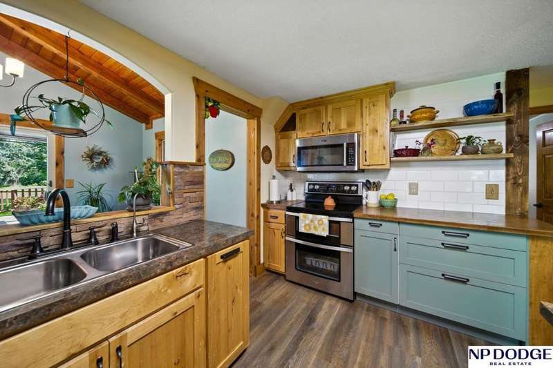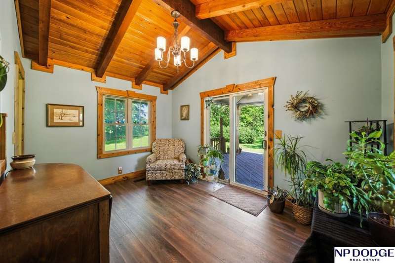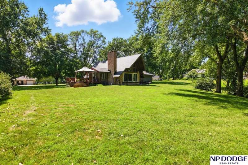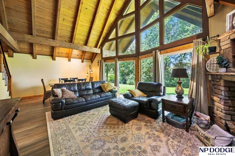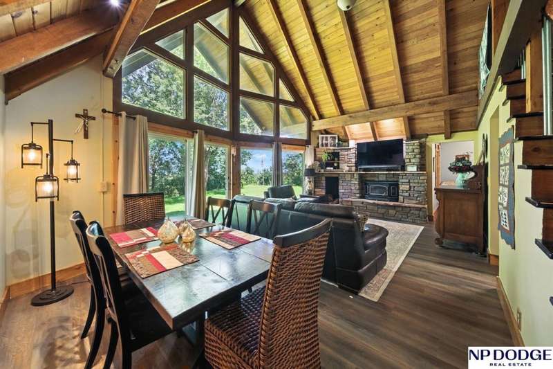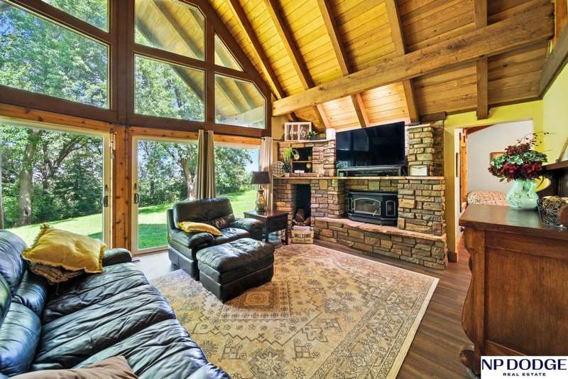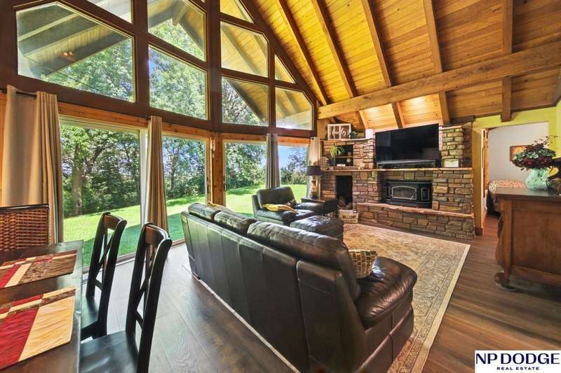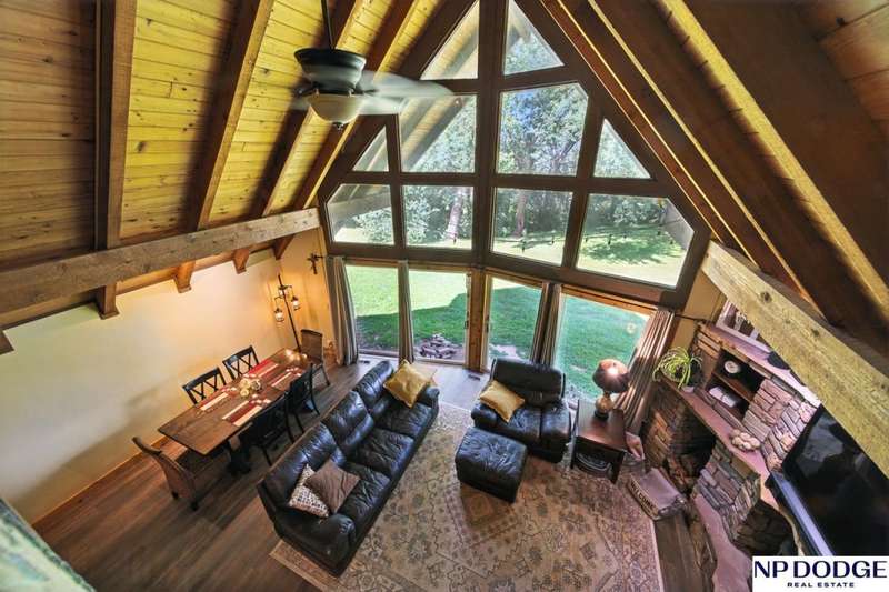 One-of-a-kind A-Frame retreat just north of Fremont! Nestled on 1.5 acres with trees lining the back bluff, this home features a premium DaVinci roof, 3 new Andersen sliding doors (2 custom), a sprinkler system and a wonderful 2-tier deck (plus seller will add a new patio or deck on the other side-ask agent for details). Inside you'll find 2 main-floor bedrooms (with beautiful fandeliers) + office, many updated kitchen cabinets, new engineered wood flooring & carpet, and a cozy living room with a wood-burning fireplace (yes, the seller even made toast on it during a storm!). Upstairs, the lofted primary suite includes a full bath with dual sinks. The lower level offers ample storage, another office, and a water treatment system for safe, clean drinking water. Truly a rare property combining character, updates, and space to enjoy!