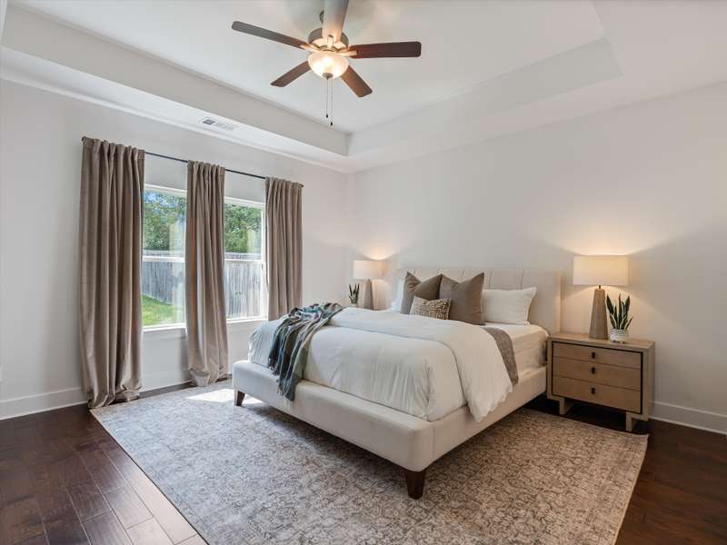 Inside, you'll find upgraded hardwood floors, a modern kitchen with a waterfall countertop, and a spacious bonus room ideal for work, play, or relaxation. The primary suite boasts an upgraded shower, offering a touch of luxury.