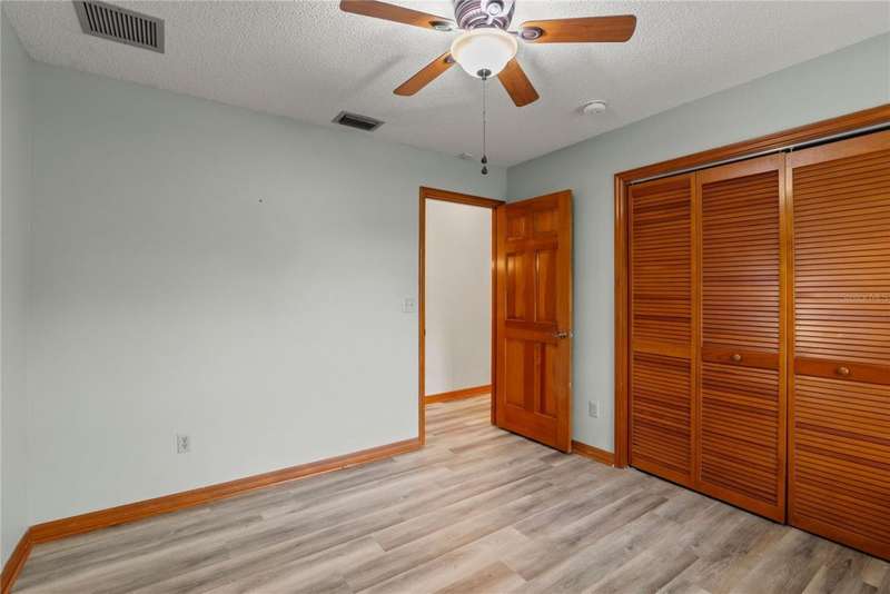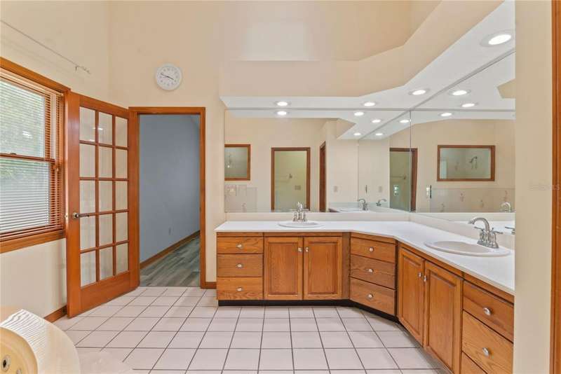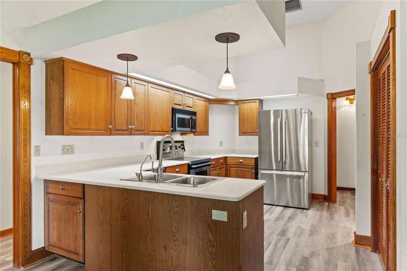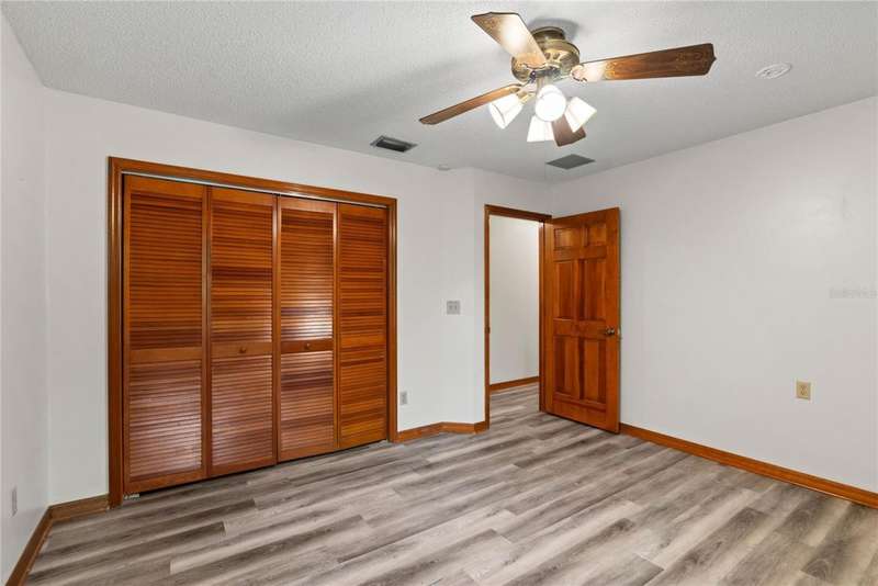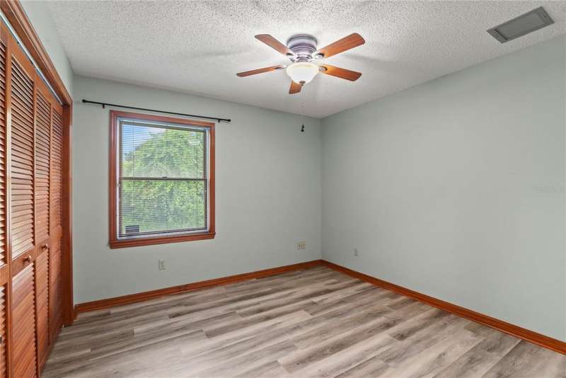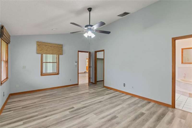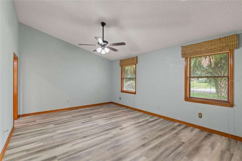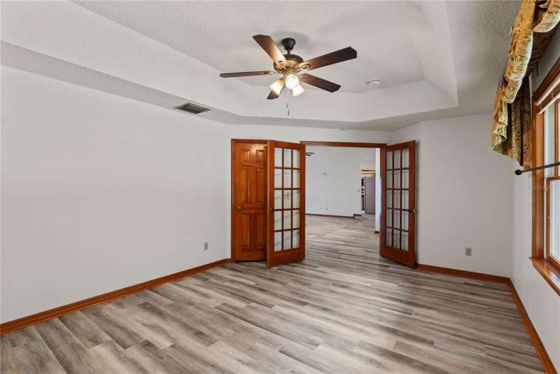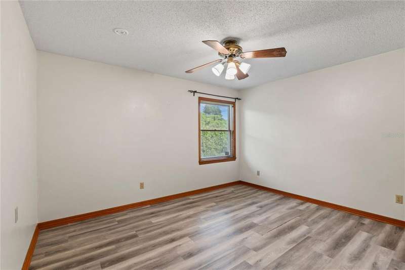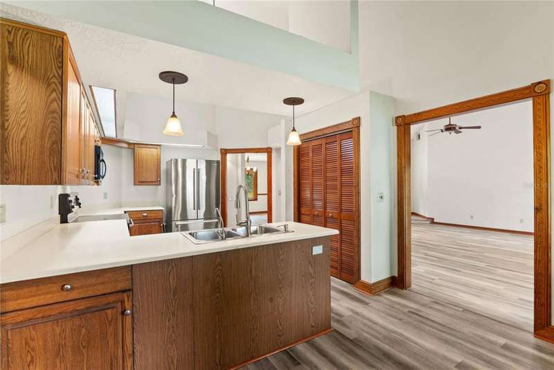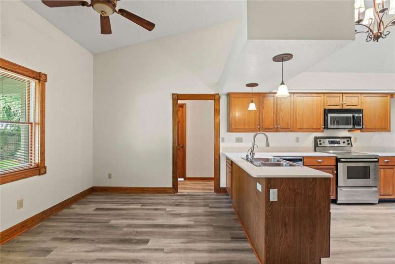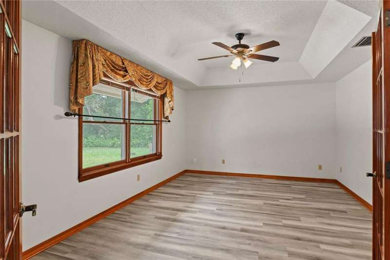 Under contract-accepting backup offers. Charming 3 bed/3 bath home in Apopka's Greenacres Estates community! This home features wood trim and doors that adds to the charm, sits on a large, 0.50 acre lot on a cul-de-sac, has an open floor plan, oversized 2 car garage, vaulted ceilings and NO HOA! This home features laminate flooring throughout the living areas with ceramic tile in the bathrooms - no carpet! When you walk in, the foyer will welcome you inside with a sunken living room featuring vaulted ceilings and skylights. The office will be on your left with glass French doors for privacy and has a closet so it can be used as a bedroom, if needed. The formal dining room is on the right, on your way to the kitchen that features newer stainless steel appliances with a wi-fi enabled fridge, wood cabinets with hardware, corian counters, a closet pantry, breakfast bar and dinette with a window overlooking the backyard. The living room features a wood burning, brick fireplace, two French doors on either side of the fireplace lead to the covered patio. What a great space to enjoy your morning coffee or unwind at the end of a long day! The owner's suite is off the living room, has lots of windows that let in a lot of natural light. The en-suite bath features a two sink vanity, wood cabinets, a ceramic tiled walk-in shower, separate garden tub and water closet. The guest bedrooms are on the other side of the home for privacy. Each bedroom has its own bathroom for convenience. One guest bath has a taller toilet. The laundry room leads to the oversized 2-car garage that is wired for an exterior generator. This home has been lovingly maintained. Additional updates include newer kitchen appliances and remote fans. Centrally located to major roads and highways, yet you can experience quiet country living with great shopping and dining close by in Altamonte Springs. Make this home yours today!