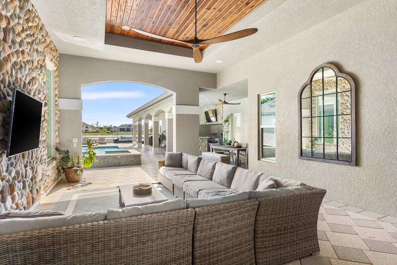 Welcome to this meticulously maintained custom estate home located in the prestigious equestrian community of Shenandoah. Set on a lush, beautifully landscaped acre, this 7-bedroom, 6.5-bath, 3 car garage home offers over 6,000 square feet of luxurious living space. Designed with both elegance and functionality in mind, this home features high-end finishes and fixtures throughout, including a gourmet kitchen equipped with top-of-the-line appliances, perfect for entertaining. Each of the seven spacious bedrooms includes a private en suite, ensuring comfort and privacy for all. The second-floor bonus room is an ideal space for a mother-in-law suite or additional living area. Outside, the expansive backyard boasts a large heated pool, a serene sitting area, and a fire pit overlooking a tranquil lake, making it a perfect retreat for relaxation or hosting guests. There is a seperate room off the home with its own private entrance, just perfect for a home gym or extra storage or can easily be converted into another garage if needed. With a sprawling driveway providing ample parking, this home is as practical as it is beautiful. Built by renowned custom home builder Carlton Naumann, every detail has been thoughtfully designed and impeccably executed. Situated just minutes from Southwest Florida's finest beaches, this Shenandoah estate offers the perfect blend of luxury, privacy, and convenience. Don't miss the opportunity to own this extraordinary home! Please read confidential comments for showing information...