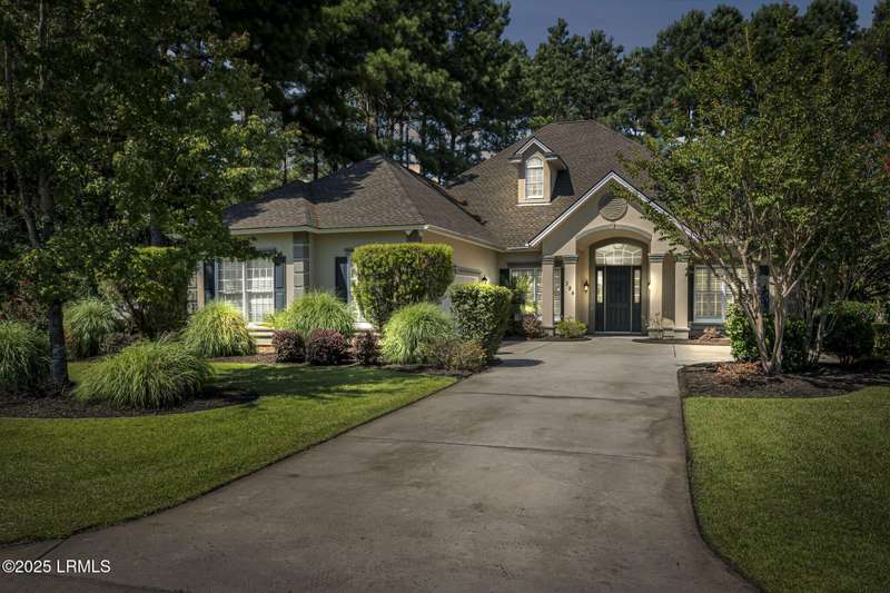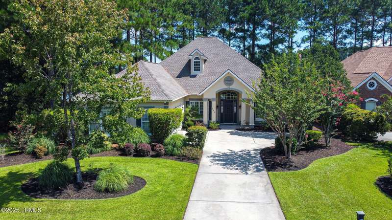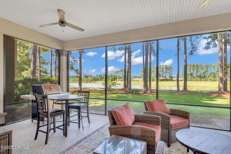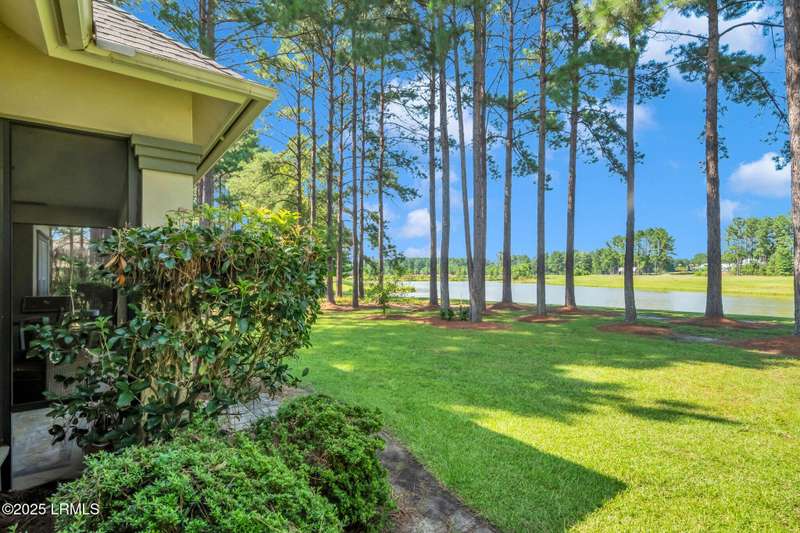 This Riverwalk floorplan shows like a model and is move in ready. 3 bedrooms/3.5 bathrooms loaded with extras: kitchen with granite counters, SS appliances, pull-outs, over/under counter lighting, tile backsplash, pendant lighting over bar seating, and built in oven/microwave. Primary suite has a large bedroom, bath with separate shower and extra large walk in closet. Great separation of bedrooms. Both guest rooms are ensuite. Wood flooring in all main living areas, carpet in bedrooms, plantation shutters throughout. Crown molding in all living areas plus primary bedroom. Oversized garage with utility sink allows for 2 cars + a golf cart. Pulldown stairs in garage with partially floored storage above. Premium lot with extra spacious back yard overlooking the lagoon. Riverton Pointe is a s