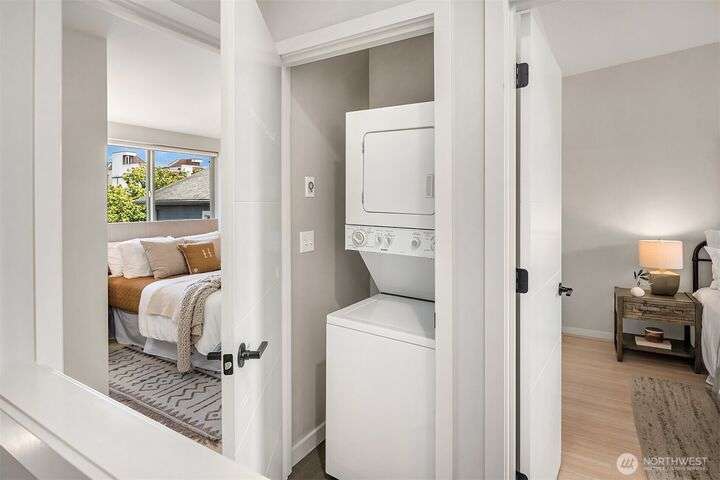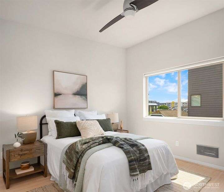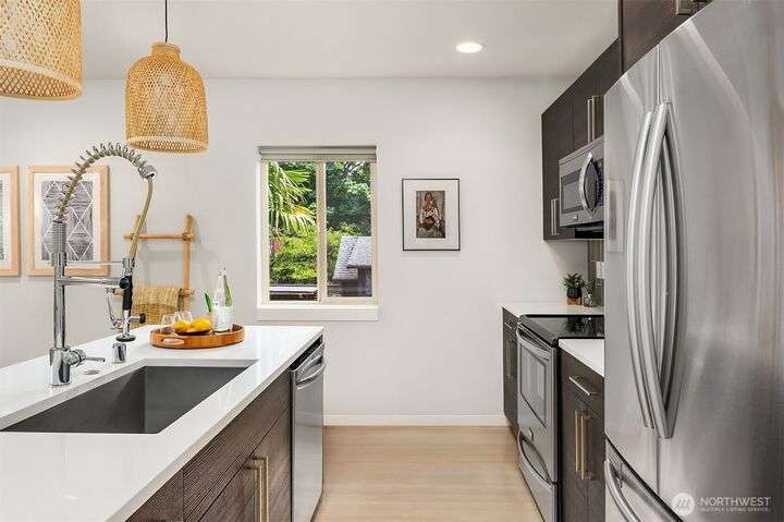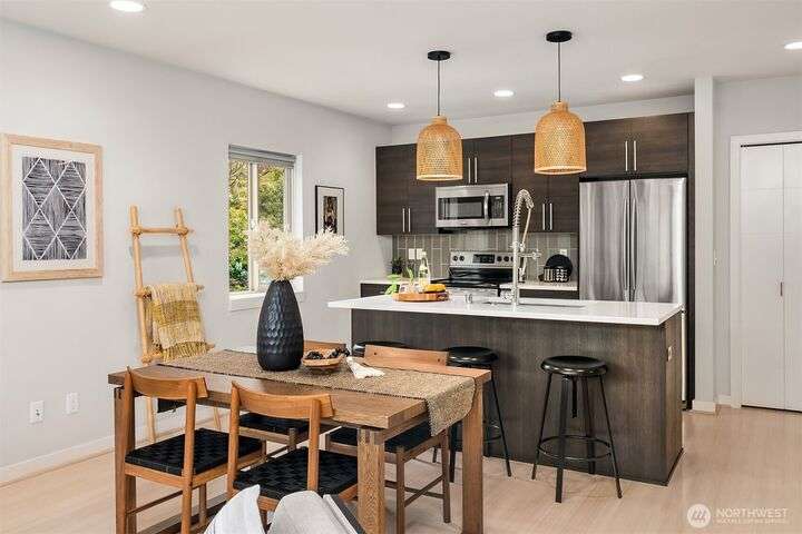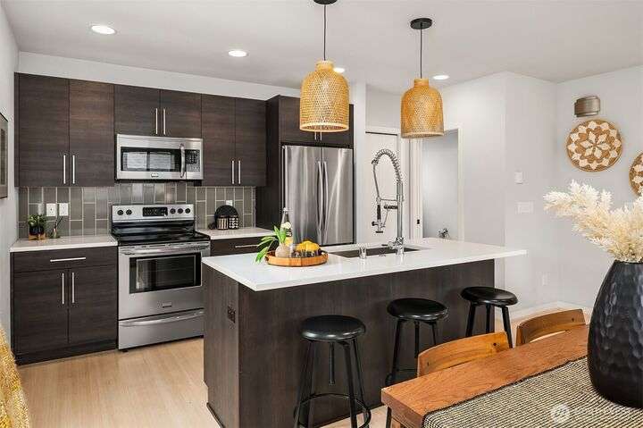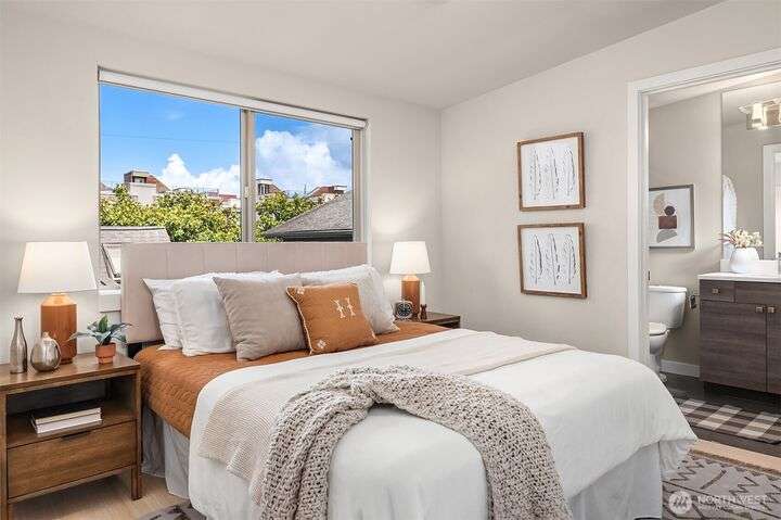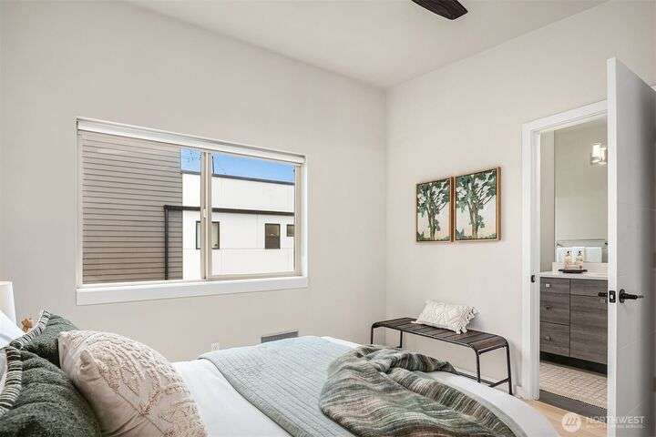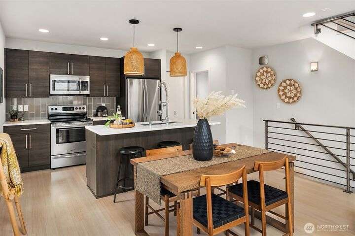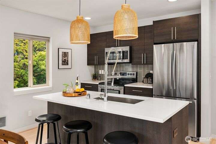 The modern townhome you’ve been waiting for! Thoughtfully designed with enduring luxurious finishes not found in today’s new construction. Solid bamboo floors on all three levels, custom metal railings, and oversized windows set a sleek backdrop for this smart floorpan. Wide, open-concept living, dining, & kitchen area are complete with a spacious kitchen island, separate pantry, lovely covered balcony, and 1/2 bath. Upstairs offers 2 primary suites, vaulted ceilings, & convenient laundry space. The entry level features a third bedroom, office nook, & extra storage closet in the designated carport. Nestled off the street, this corner unit feels protected & quiet, while also being steps from amazing restaurants, parks, nightlife, & transit.