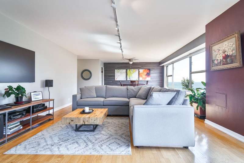 Lakefront living meets city convenience at El Lago Condominiums. This bright corner unit offers a private balcony, a spacious one-bedroom layout with potential for a second bedroom, and an oversized sun-filled living room with hardwood floors and sweeping city and lake views. The home includes a separate dining area, a king-sized primary bedroom with walk-in closet, and generous storage throughout. Monthly assessments cover high-speed internet, heat and air conditioning, and access to 24-hour door staff, a fitness center, receiving room, community room, on-site laundry, and a rooftop deck with panoramic views of Lake Michigan-perfect for relaxing or entertaining. The building also offers indoor heated parking options, storage lockers, and bike space. With strong reserves and no rental cap, this professionally managed, low-assessment, secure elevator building is a solid choice. The location makes commuting a breeze with the Sheridan Road express bus at your door and the Red Line just blocks away. You'll be steps from Berger Park, the Waterfront Cafe, Loyola University, Whole Foods, Target, restaurants, shops, the lakefront bike path, and beaches.