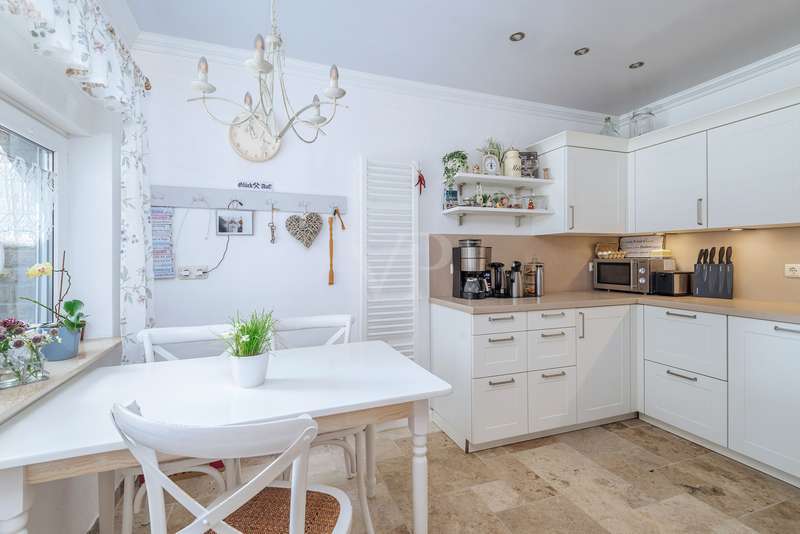 Welcome to a place where tranquillity, nature and stylish living come together in a special way. This lovingly designed detached house tells a story of quality craftsmanship, a keen sense of aesthetics and the desire for a home that provides a sense of security. A place where you can breathe a sigh of relief - whether permanently or as a very personal retreat. On approx. 95 m² of living and usable space, you can expect a living experience that skillfully combines charm and modern technology. The heart of the house is the open-plan living area with a cozy soapstone stove - a place to arrive, to pause, to live. The large south-facing windows flood the room with light and the view sweeps over the well-tended, enclosed grounds - your very own little paradise. The high-quality country kitchen blends harmoniously into the overall picture. Noble natural stone tiles, which run through almost all the living areas, underline the high-quality standard of the house - robust, stylish and pleasantly warm underfoot. Plastered walls, fine ceiling stucco and selected materials create an ambience that conveys warmth and security. The bathroom impresses with a floor-level shower, integrated ceiling spotlights and harmoniously coordinated surfaces - a modern, functional room that invites you to linger with its calm design. The conversion of the top floor has already been prepared: Whether a guest room, studio or home office - the space for your ideas is available and the pipes have already been laid. Technically, the house is ideally equipped: A Weishaupt gas boiler (built in 2020), partially electric external roller shutters, a prepared fiber optic connection and two rainwater cisterns of 1,500 l each enable resource-saving living with a high level of comfort. The core refurbishment carried out in 2022 will give the building a new shine in terms of energy efficiency and design. The approx. 678 m² fenced plot is low-maintenance yet green and lively - a garden paradise that invites you to take a deep breath. A covered terrace in the courtyard area, paths made of polygonal slabs, a generous entrance gate and a solid garage with plenty of storage space underline the well thought-out outdoor area. The clinker brick façade ensures a high-quality, timeless elegance. An already approved roof terrace of approx. 35 m² opens up additional potential - a wonderful place for hours of sunshine and a sweeping view over your new home. The location? Close to the Baltic Sea, green and well connected. Surrounded by meadows and forests, you can enjoy being close to nature - with the Baltic Sea just a stone's throw away. Beautiful cycling and hiking trails start right on your doorstep, leading you through the Rostock Heath or towards the coast. The beach at Markgrafenheide, the popular Schnatermann excursion destination and Karl's strawberry farm can all be easily reached by bike. And best of all: you can be in Rostock city center by bike in just 25 minutes - relaxed, quiet and climate-friendly. So you can leave your car at home. Whether as a main residence or a second home - this house offers space for quality of life. Move in, breathe a sigh of relief and enjoy something special: This home combines high-quality substance with style and closeness to nature - a truly unique property that is ready for tomorrow today.