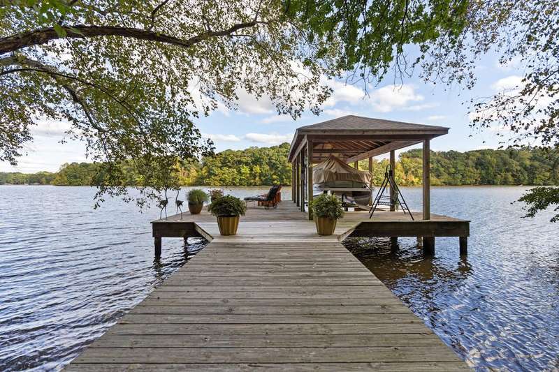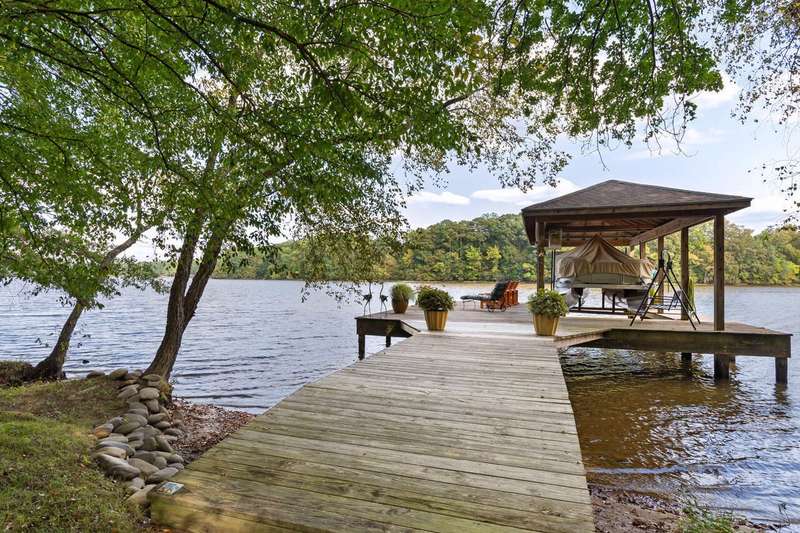 Fabulous custom built, waterfront home on the Tar River Reservoir! Porches galore! Professionally landscaped yard, fantastic dock & boat house, workshop w/roll-up door, lots of trey ceilings & heavy woodwork. Built-ins, oversized walk-in storage, office with views of the water, large bonus room, irrigation, double garage, firepit & more! You can tell this one was custom!! HOA fee 375/annually.