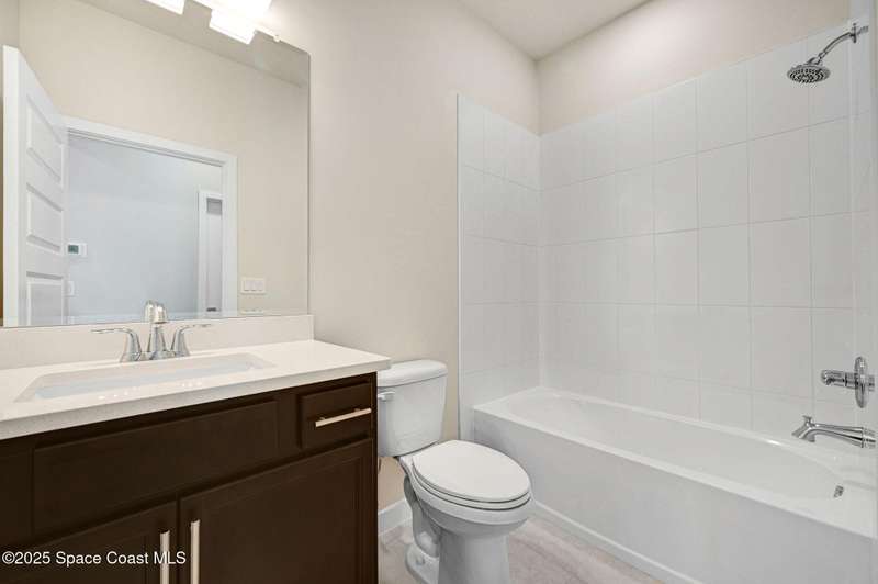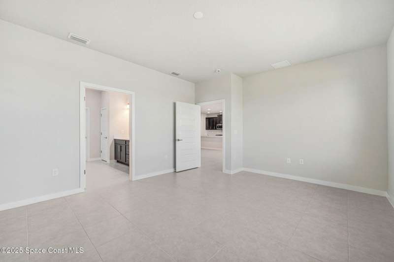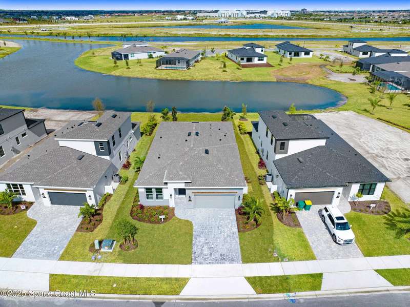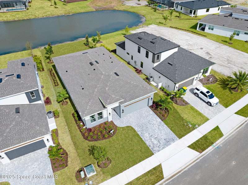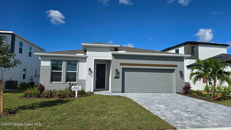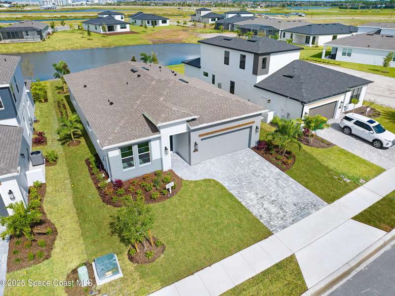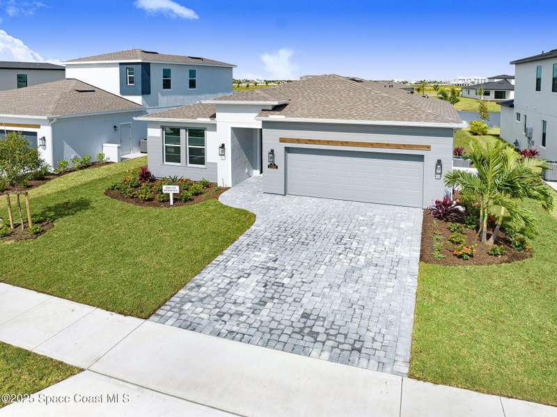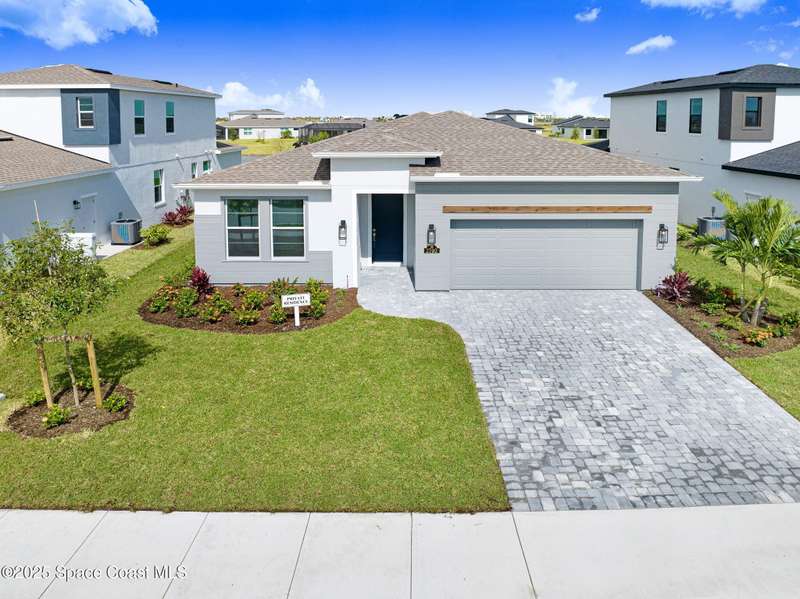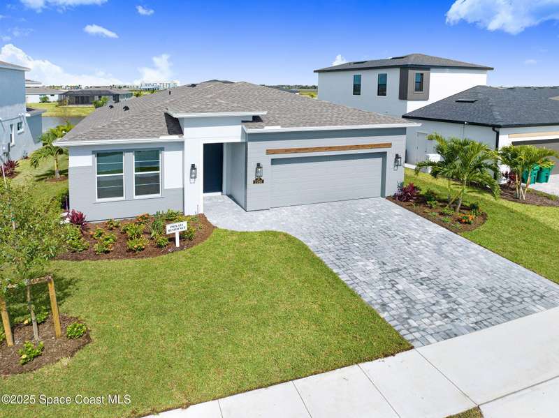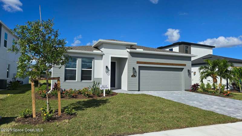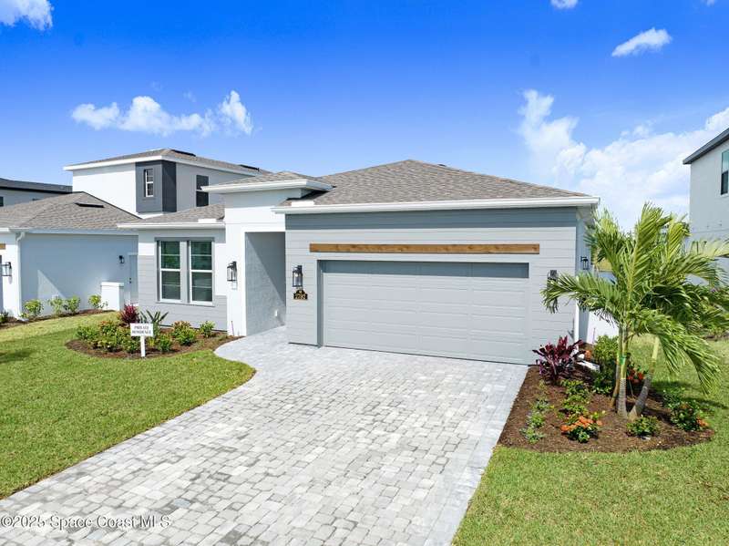 2025 Viera Built home in Crossmolina community with plenty space for a pool. This modern 3-bedroom, 3-bathroom residence includes a dedicated flex room/office, & tiles throughout. The bright, open floor plan flows seamlessly, highlighting a stunning kitchen complete w/quartz countertops, upgraded hardware, a large walk-in pantry, and a caf area. The great room is illuminated by 6 recessed wafer LED fixtures. Retreat to the spacious main bedroom, which features an oversized walk-in closet. Built with peace of mind, the home boasts impact-resistant windows, full smart-home features, transferable 2-year builder plus 10-year structural warranty. As an owner in Crossmolina, you'll have access to a future community clubhouse and pool. You also have the option (not required!) to join the amenities at Addison Village. The home's prime location puts you just minutes from the new Publix & Costco, as well as The Avenue shops, dog parks, the Brevard Zoo, and a variety of dining & golfing options For travel and day trips, it's less than one hour to Orlando and about 30 minutes to Port Canaveral.