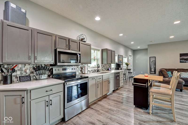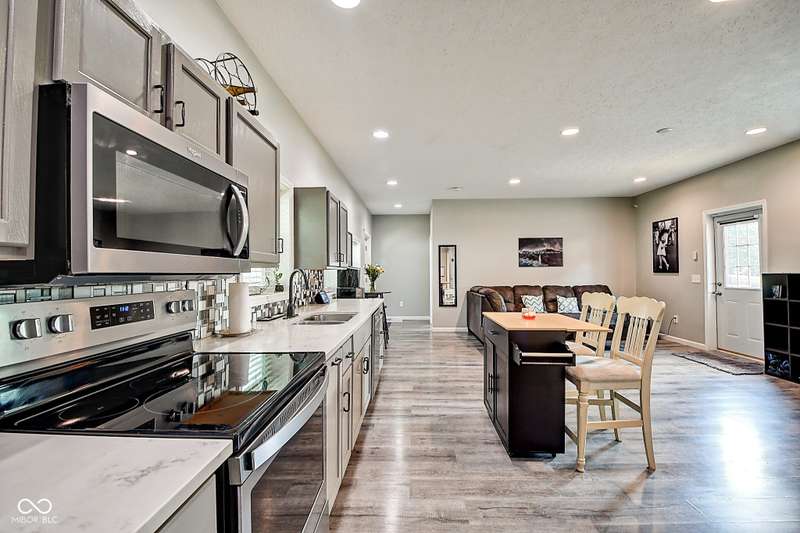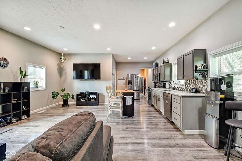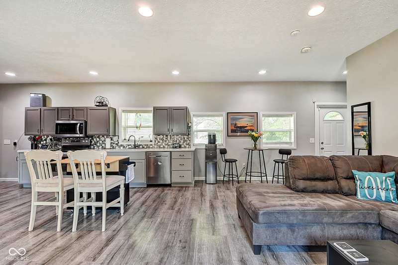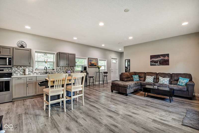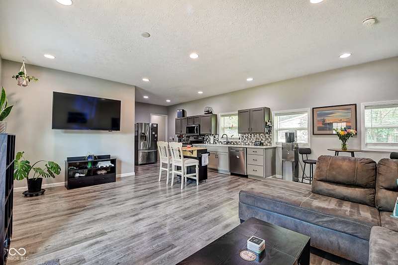 Welcome to your serene homestead retreat perched above the streetscape, offering just over half an acre to savor peaceful summer days and nights. Experience the perfect blend of city convenience and country charm-only 10 minutes from Monument Circle and all the vibrant nightlife, dining, and entertainment downtown Indy has to offer. Enjoy quick access to Fountain Square, Mass Ave, and Bottleworks, with easy connectivity to I465, I70, and I65. Inside, the home features a bright, open-concept layout with a galley kitchen seamlessly connected to the living and dining areas-perfect for everyday living and entertaining. The spacious primary suite boasts a double vanity and is complemented by two additional bedrooms. A firstfloor laundry and an additional full bath add everyday convenience, while lowmaintenance vinyl plank flooring flows beautifully throughout. This is your chance to enjoy the best of both worlds-a peaceful, spacious setting within minutes of everything the city has to offer.