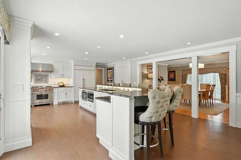 Stunning residence blends modern luxury w/timeless comfort in premiere neighborhood, just moments from town center & schools. Newer Vartanian custom kitchen featuring inset cabinetry, high-end appliances, massive center island & pantry, seamlessly flows into an impressive great room w/vaulted ceilings & dramatic wall of glass & dining room w/custom millwork & bar area. Main level offers versatile living w/living room, 5th bedroom, renovated full bath, 2 half baths, mudroom & convenient laundry room. Upstairs, a generous primary suite boasts custom California Closet & spa-like bath. 3 additional bedrooms share beautifully renovated 3rd full bath, complemented by a dedicated home office for ultimate functionality. Lower-level features a versatile recreation room, perfect for leisure or fitness. Outside, the large level lot is an entertainer s dream, showcasing paver patio, equipped w/outdoor kitchen & inground heated pool. Exceptional property offers luxury, functionality & tranquility.