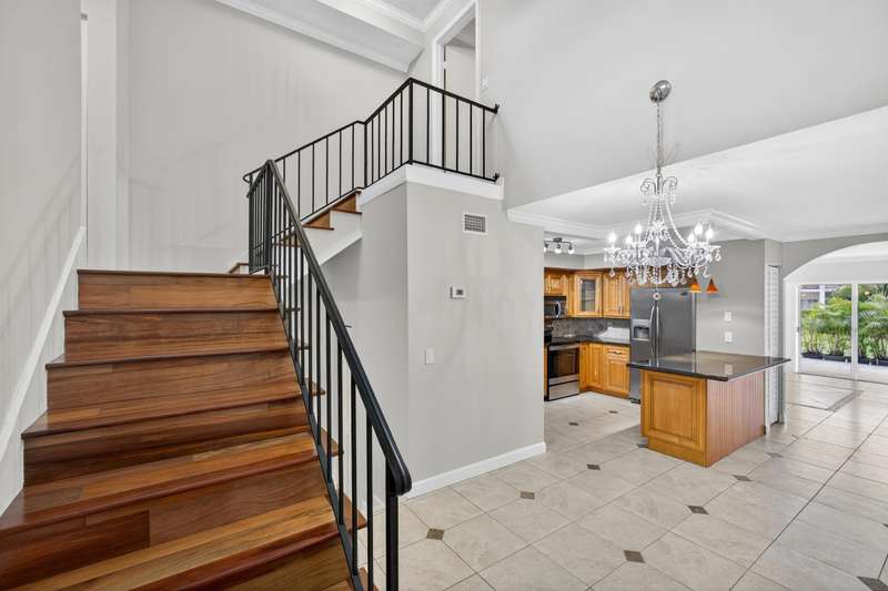 Welcome to Royale Harbour a unique watefront community and live the life of luxury at a fraction of the adjacent million-dollar properties! Enter this charming, freshly painted, and impeccably cared-for townhome and enjoy gorgeous tile floors with stylish inlay, tasteful crown molding, and warm lighting on the main level. Kitchen features granite countertops, generous cabinetry, and a wine cooler--setting the stage for unforgettable gatherings. Upstairs, enjoy beautiful hardwood floors, a comfortable guest bedroom with spacious closets, vast primary suite with two custom walk-ins, and oversized linen closet. Outside, unwind on the patio with views of lush courtyard gardens or savor views from your private balcony of the brilliant Florida sky. New roof, A/C condenser, and water heater.