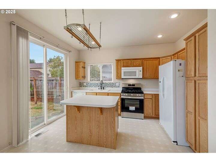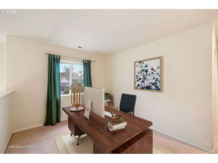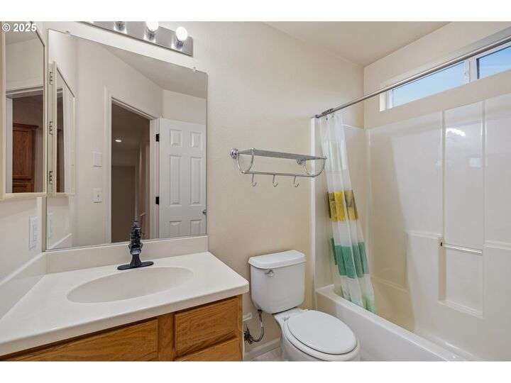 This home features a spacious upstairs loft that functions as a third room—don’t overlook it just because it’s listed as a 2-bedroom! The loft is perfect for an office, den, or even a guest bedroom. On the main level, you’ll find both formal and informal living areas with an open layout and soaring ceilings, creating flexible spaces for everyday living. The kitchen provides generous storage and workspace to meet your daily needs. The large backyard is ideal for gardening or outdoor activities, while the private driveway and oversized garage offer plenty of parking and storage. All this just a block from Bethel Community Park and within walking distance of Meadow View School. Schedule your tour today!