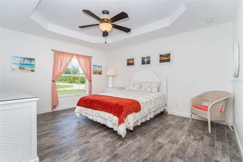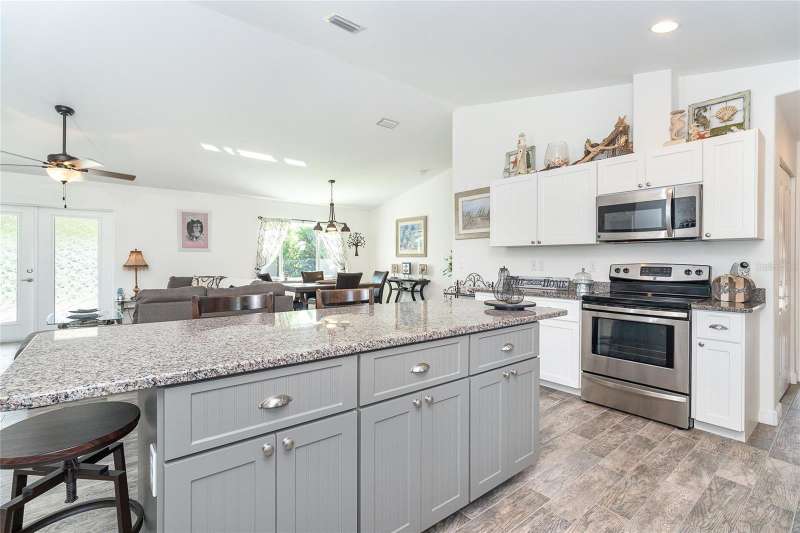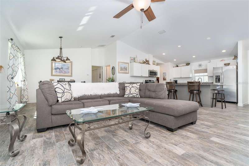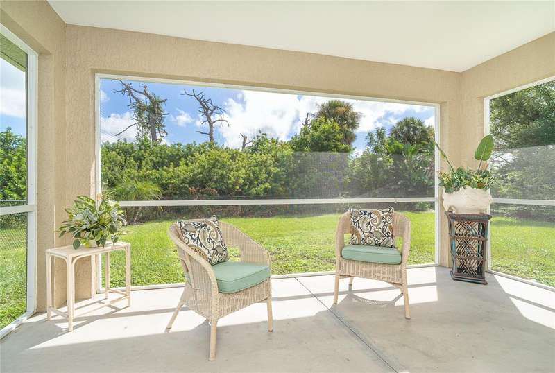 Welcome Home to Easy Florida Living! Why wait to build when this 2018 Warren Hope built home is move-in ready, turn-key furnished, and perfectly positioned in an X-flood zone with impact windows and doors. Step inside and feel the warmth of a home designed for everyday comfort and effortless entertaining. The open floor plan connects the great room, dining area, and kitchen where white shaker cabinetry, granite counters, and a large contrasting island set the stage for family meals or cocktail hour with friends. Vaulted ceilings, wood-look tile floors, and crisp 4? baseboards run throughout, creating a cohesive, modern feel. Through the French doors, the screened lanai with panoramic screening becomes your own quiet retreat. Sip morning coffee while the world wakes up, or wind down in the evening breeze under a sky full of stars. The fenced backyard offers plenty of space for pets, a future pool, or that dream outdoor kitchen and firepit setup. The primary suite is your sanctuary, complete with a tray ceiling, dual closets, and a spa-inspired bath featuring a frameless glass shower and dual-sink granite vanity. Two guest rooms and a full bath give family and visitors comfort and privacy. And the location? You'll be less than 7 miles to Englewood Beach, 3 miles to golf and tennis, and surrounded by endless opportunities to live your best coastal life kayaking, boating, hiking, dining, and exploring local shops and farmers markets. This home is more than move-in ready it's ready for your next chapter. Call today to schedule your private showing.