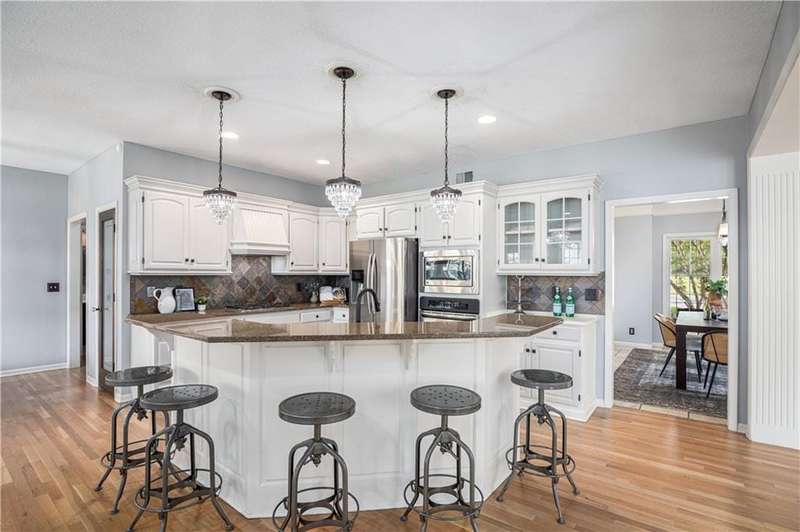 Spacious home that blends comfort, style, and convenience in the heart of Overland Park. If you are looking for curb appeal, well you found it! This move-in ready property is the perfect fit for families of all sizes! Just shy of 4000 square feet. Two story home featuring 5 bedrooms, bonus room, spacious home office, 4.1 baths, 3 car garage, and located on a .59 acre lot. Step inside through the tiled entry and be welcomed by soaring ceilings, abundant natural light from floor-to-ceiling windows, and beautiful newly refinished hardwood floors. The open kitchen is designed for connectionperfect for family dinners or entertaining guestswhile the formal dining room offers plenty of space for holiday meals and celebrations. A main-floor office provides flexibility to work from home, set up a playroom, or create a gaming space for the kids. Two fireplaces on the main level bring warmth and charm to family gatherings.Upstairs, the expansive primary suite is a peaceful retreat with a spa-like bath to unwind after a busy day. The Hollywood bath connecting two bedrooms is ideal for siblings, while a fourth bedroom with private bath and vaulted ceiling gives everyone their own space. The finished basement is ready for fun, featuring a cozy fireplace, stylish bar, additional bedroom, bonus room, full bath with steam shower, and plenty of room for storage or hobbies. Outdoor living is just as inviting with a partially covered deck, a lower patio, and a spacious yard perfect for play, barbecues, or relaxing evenings. This home truly has it allspace to spread out, places to come together, and a location that cant be beat. Come see how perfectly it fits your familys lifestyle!