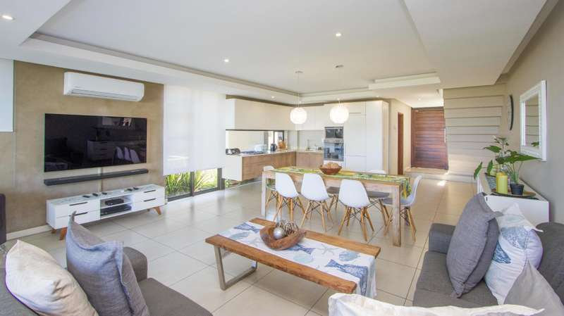 Welcome to a stunning 4-bedroom home that perfectly blends modern design with natural beauty. From the moment you arrive, the contemporary architecture and lush landscaping create an inviting atmosphere. The sleek facade features natural stone and wood accents, complemented by beautifully arranged gardens that ensure both elegance and privacy. Step inside to discover an expansive open-plan living area, flooded with natural light from large windows and sliding doors. This airy space seamlessly connects the living room, dining area, and a state-of-the-art kitchen equipped with high-end stainless steel appliances, generous counter space, and a large island for casual dining. The elegant d??cor, with neutral tones and high-quality finishes, enhances the warm and inviting ambiance. The master suite is a true retreat, boasting a spacious layout, stunning views, and an opulent ensuite bathroom complete with a soaking tub and double vanity. The additional three bedrooms are equally impressive, each offering ample storage and natural light, ideal for family or guests. Step outside to the expansive patio, perfect for entertaining or relaxing in the beautiful Zimbali climate. This outdoor oasis features lush gardens that create a tranquil escape. The property also incorporates smart home technology for enhanced convenience and energy efficiency. Living in Zimbali means access to world-class amenities, including golf courses, pristine beaches, and walking trails, all within a secure and family-friendly community. Property 24 is not just a house; it?ÇÖs a luxurious sanctuary designed for modern coastal living. Don?ÇÖt miss the opportunity to make this stunning residence your own and experience the ultimate in upscale living.
