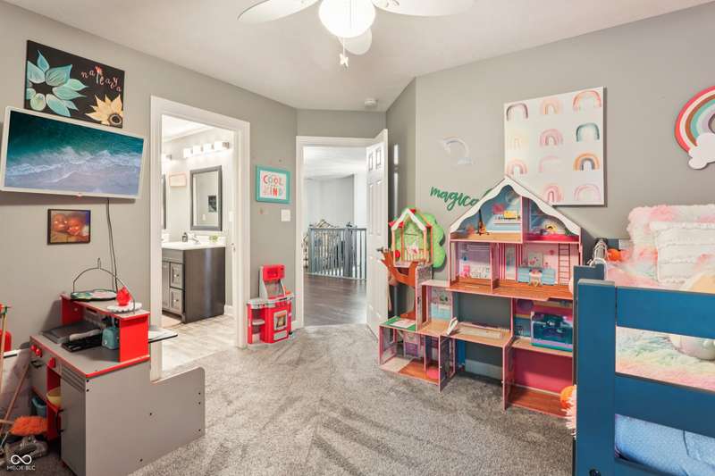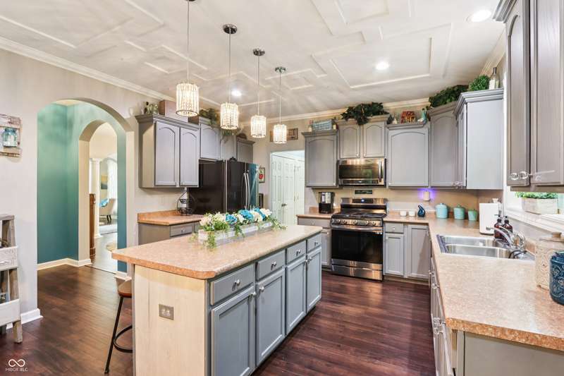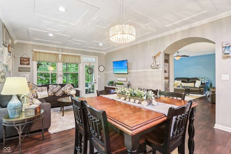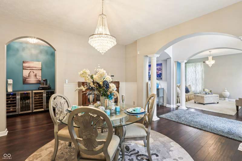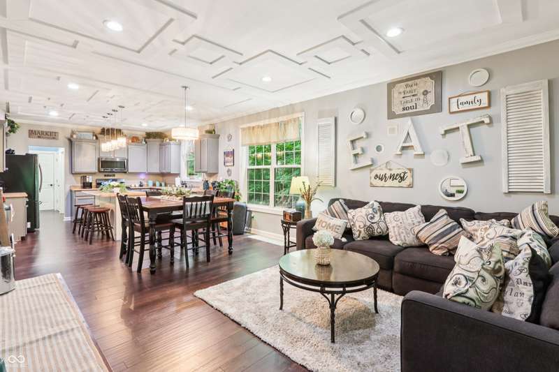 Take a good look at this lovely Avon, Indiana home nestled amongst mature trees in the Groves at Beechwood Farms. This 7 bedrooms and 5 full baths property has been beautifully maintained. When guests arrive, they are greeted by a large foyer with cathedral ceilings flanked by the formal dining room and den or library on either side. The heart of the home hosts a spacious living room with tall ceilings and a fireplace adjoining an oversized kitchen with updated stainless-steel appliances, breakfast bar, kitchen table and another living space with a sectional sofa and a television for family and guests to casually hang out together. The kitchen looks out to the beautiful screened in sunroom and back deck and has access to the garage and separate laundry room. There is also a bedroom and full bathroom on the main floor that could be a good fit for an in-law's quarters or could be used for a large home office. The second floor has a common loft space connecting the 5 bedrooms and 3 full bathroom. The primary bedroom is an oasis with ensuite, natural lighting, garden tub, stand-alone-shower, double sinks, a large walk-in closet, plenty of storage and privacy. It is the perfect place to retreat from a stressful day. Two of the upstairs bedrooms share a cute jack-and-jill bathroom while the remaining two bedrooms have access to the third full bath on this floor. The basement is home to the entertainment/movie room, a kitchenet/bar area and a finished bonus room that is 23x15 feet providing an endless number of uses. The 7th bedroom and 5th full bath round out the finished living space in the basement. There is also an additional 400 sq ft of unfinished space walled off that has been used as a weight room in the past and can store as much holiday decor as your heart desires! Built in 2006, this property has been very well cared for and even has a new roof.